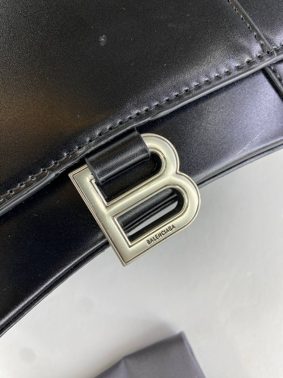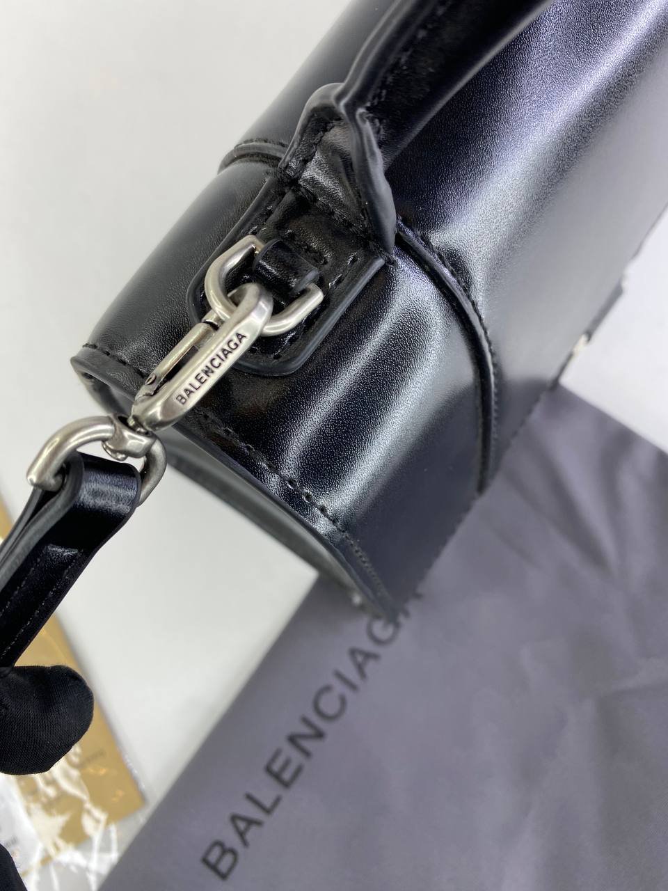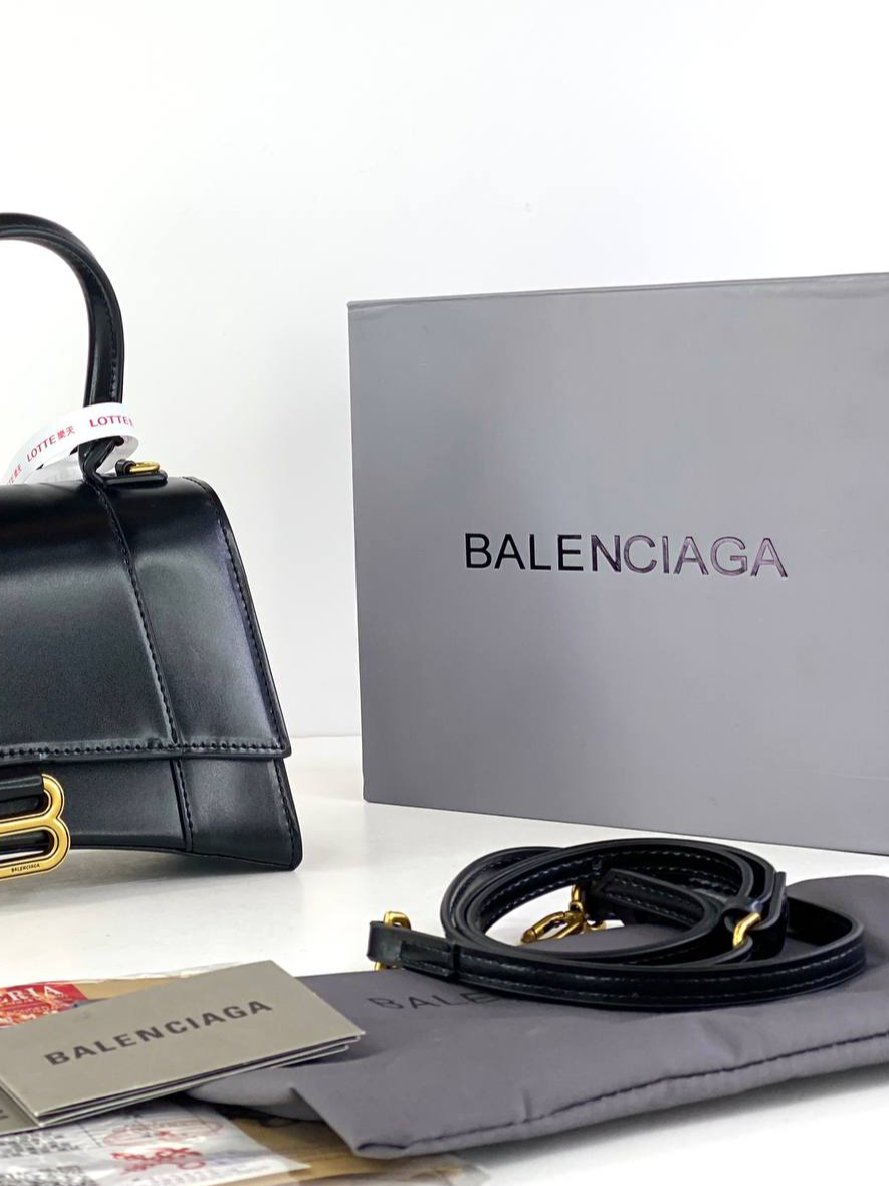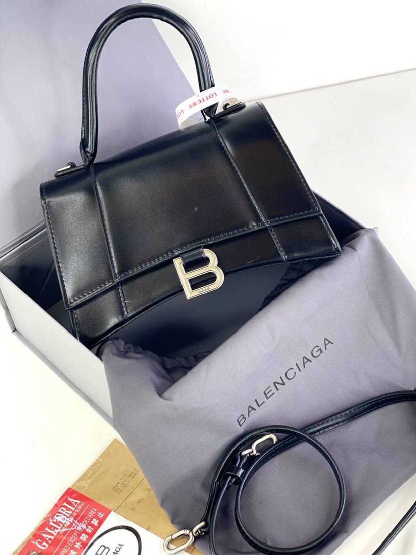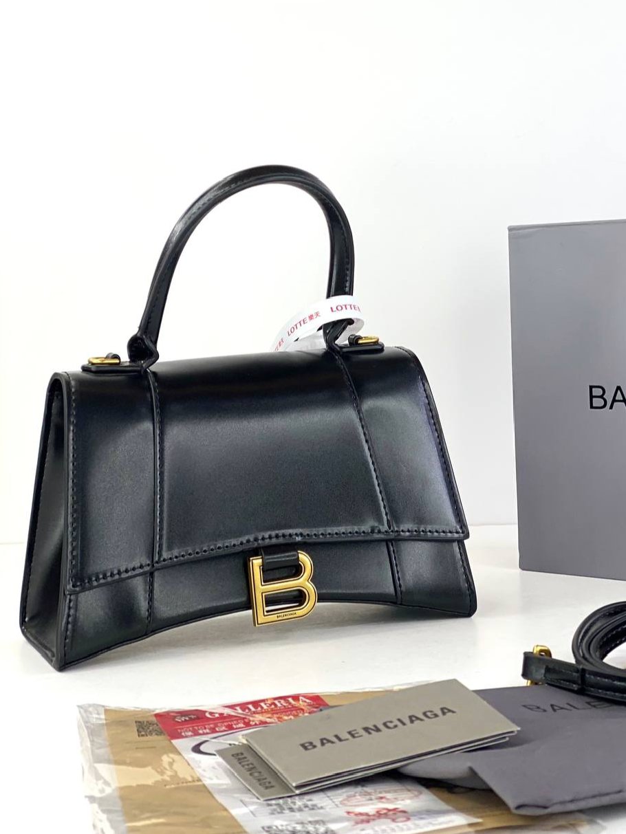 Balenciaga Box Calfskin Small Hourglass Top Handle Bag Black + Brand Box , size 21*14