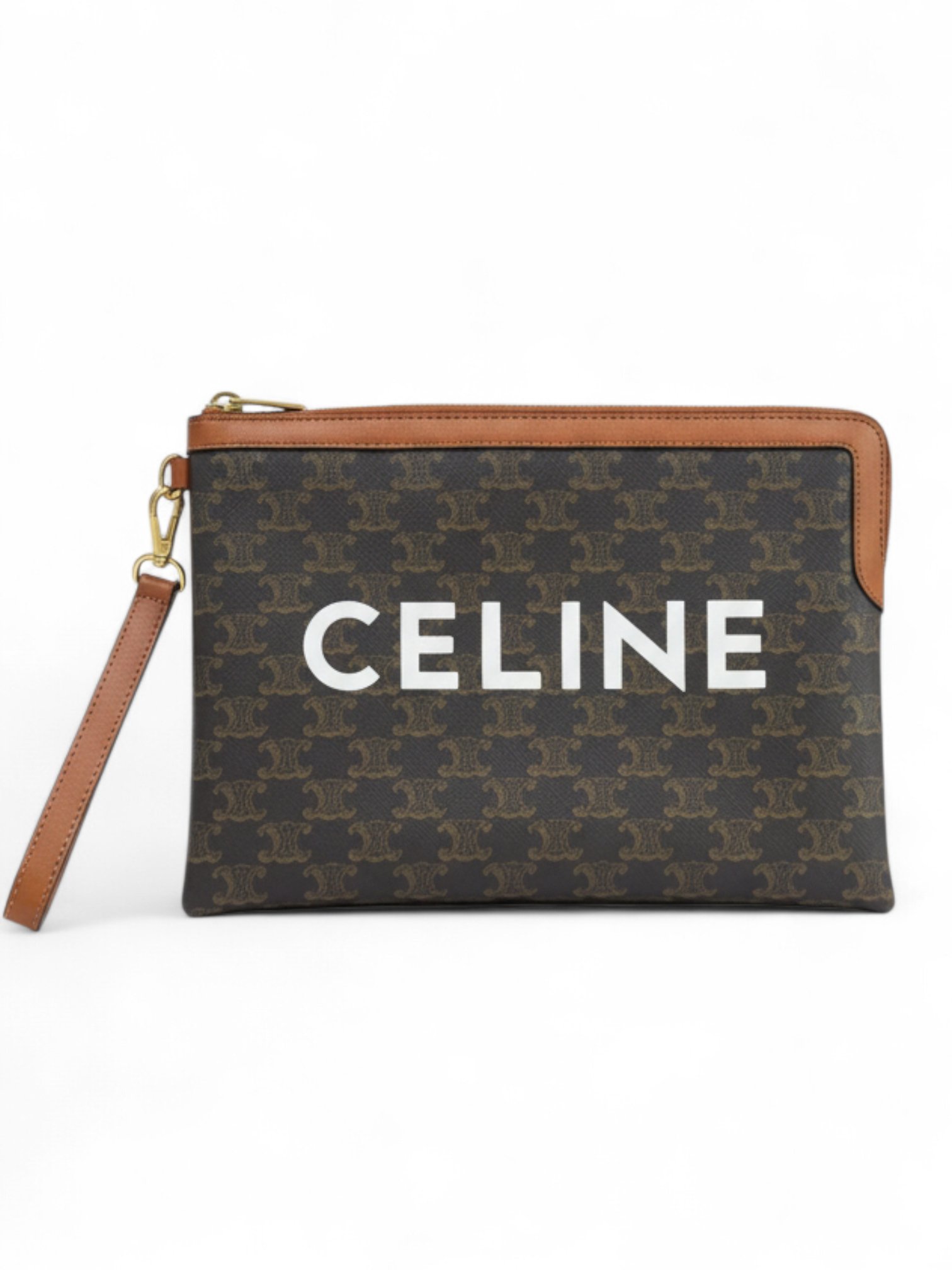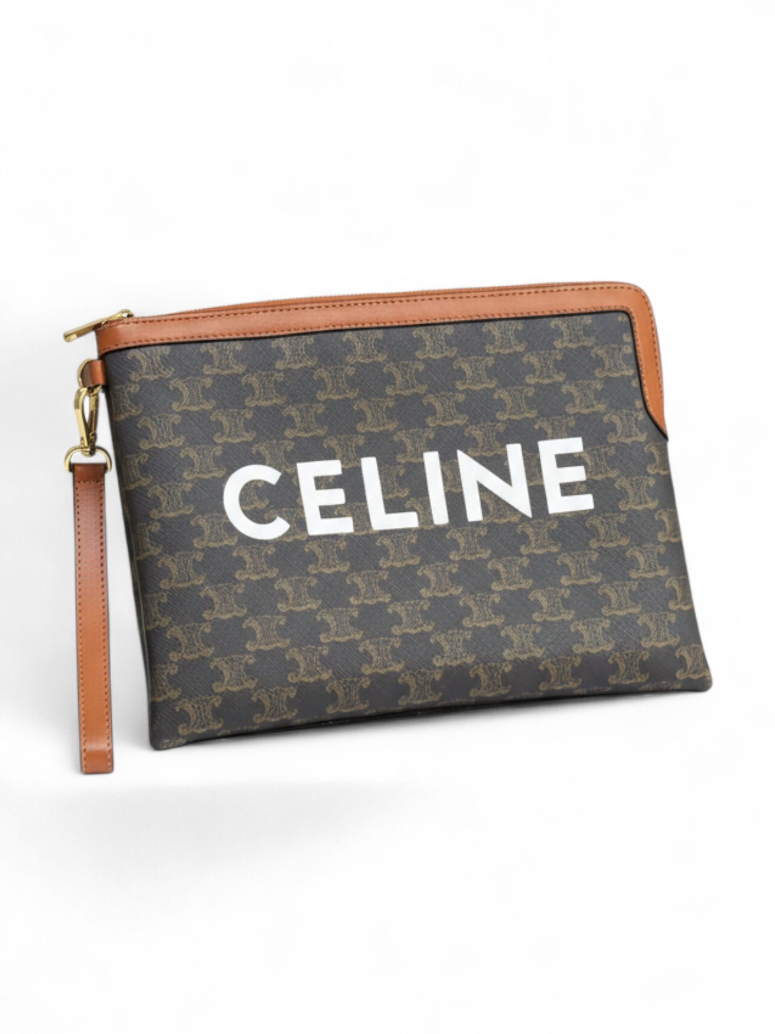 Celine Clutch Brown/Black Triomphe Coated Canvas Pouch + Brand Box soh , size 28*20