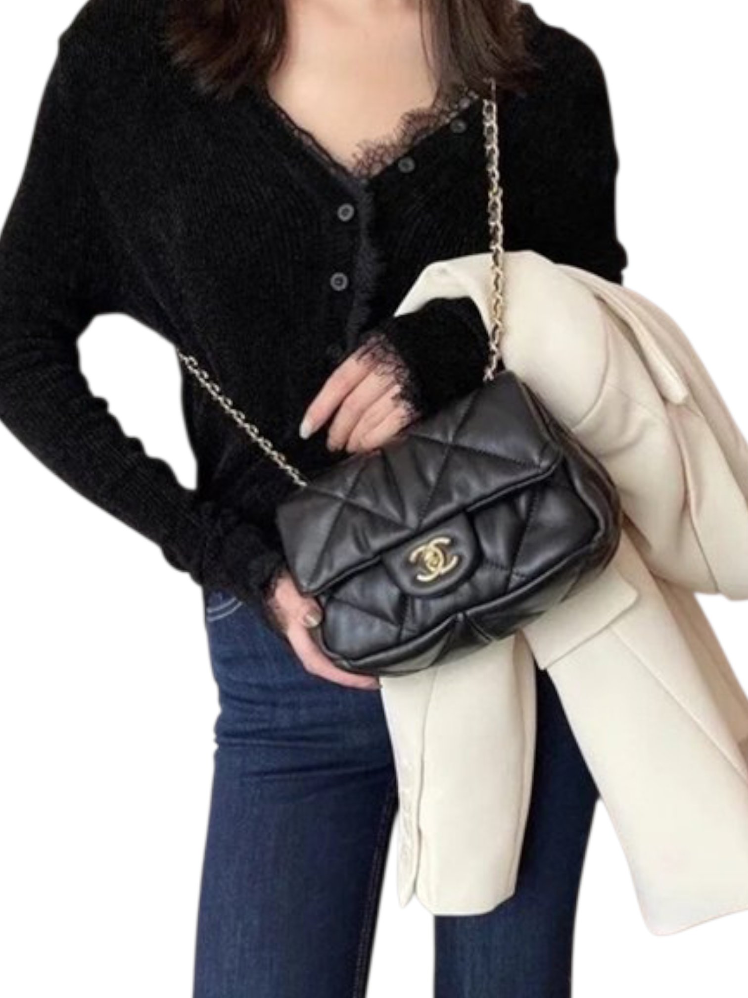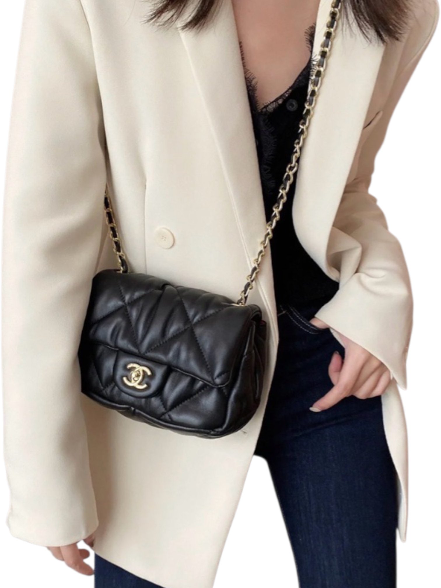 CHANEL 19 Puffy Bubbly Small Square Flap Bag + Brand Box , size 22*17