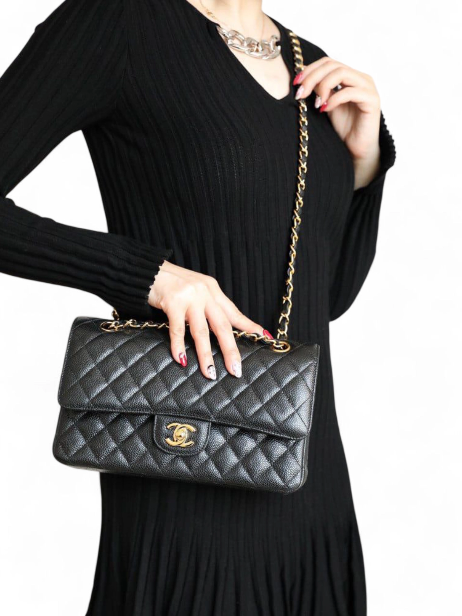 Chanel Caviar Quilted Leather Jumbo Classic Double Flap Bag + brand Box trd , size 26*15