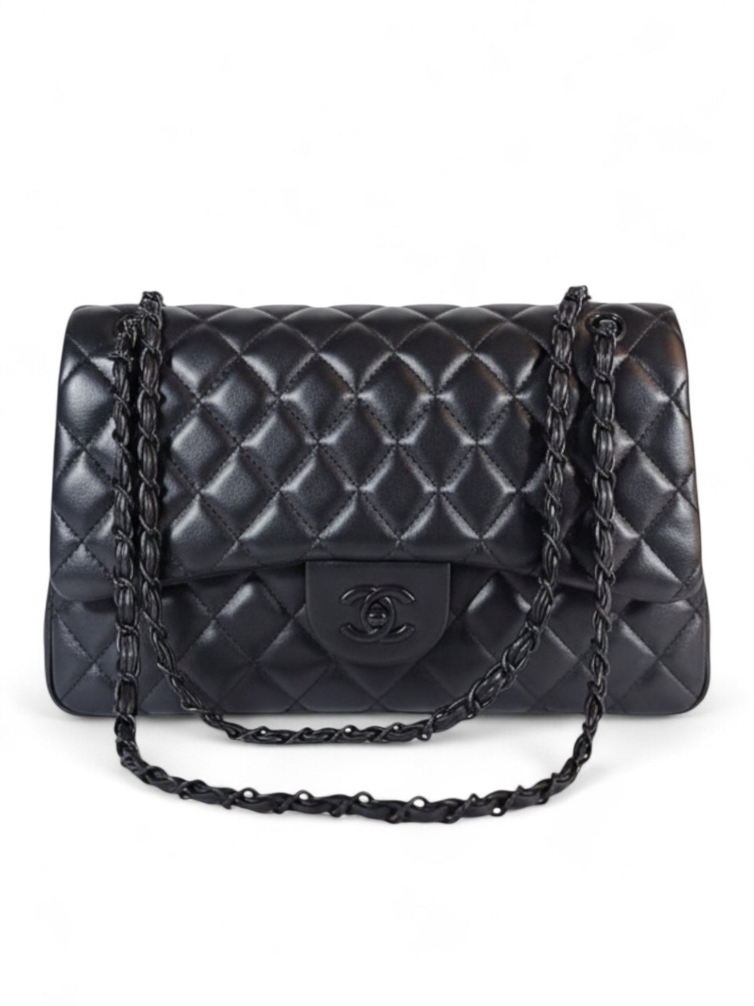 Chanel Lambskin Quilted Double Flap Black + Brand Box, size 30*19
