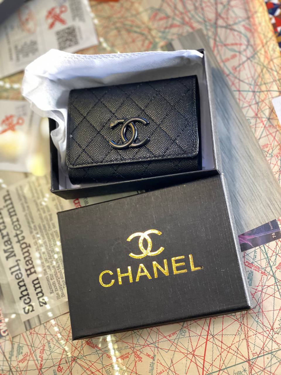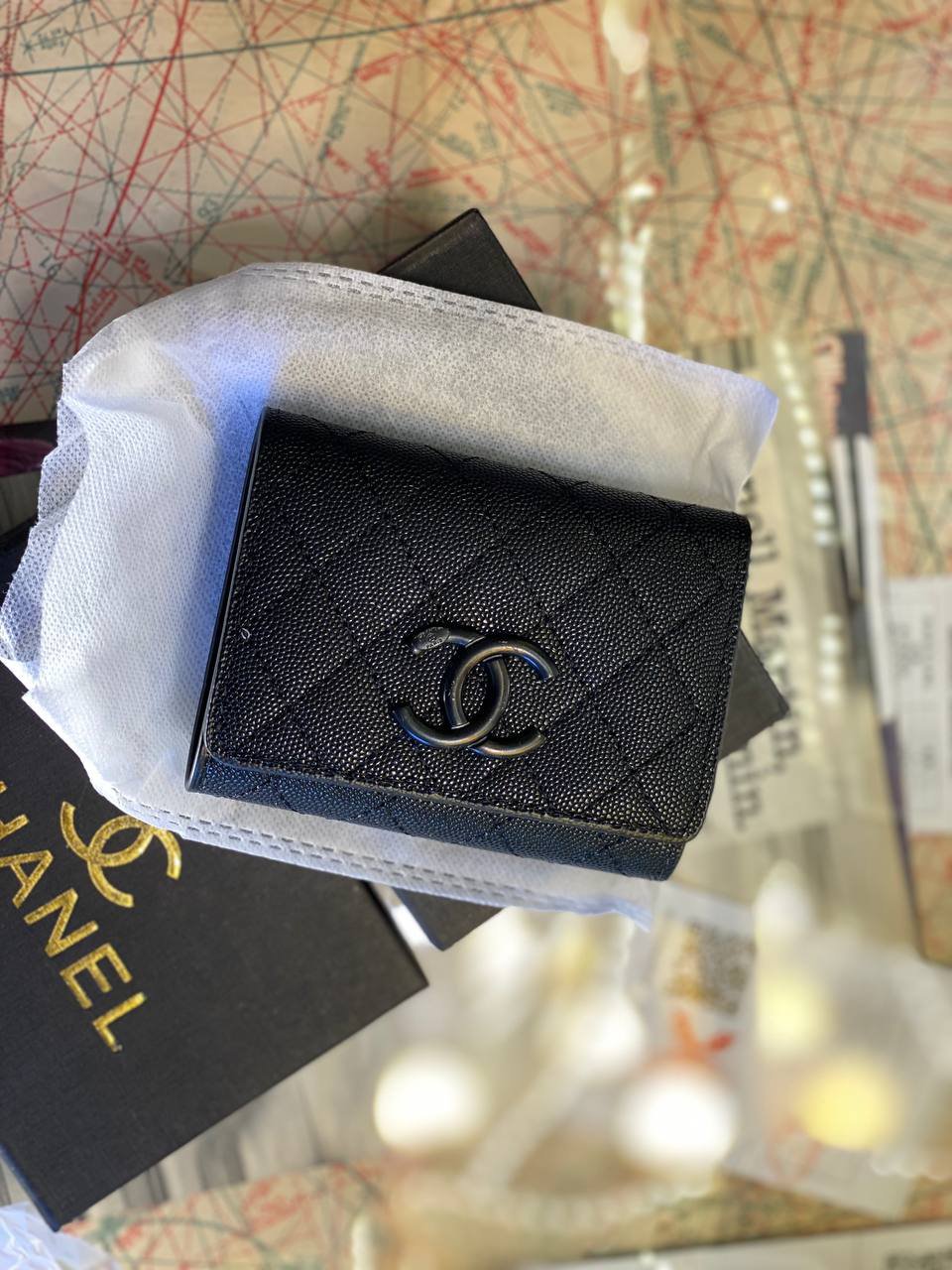 CHANEL small wallet + Box + dust cover size 12×10