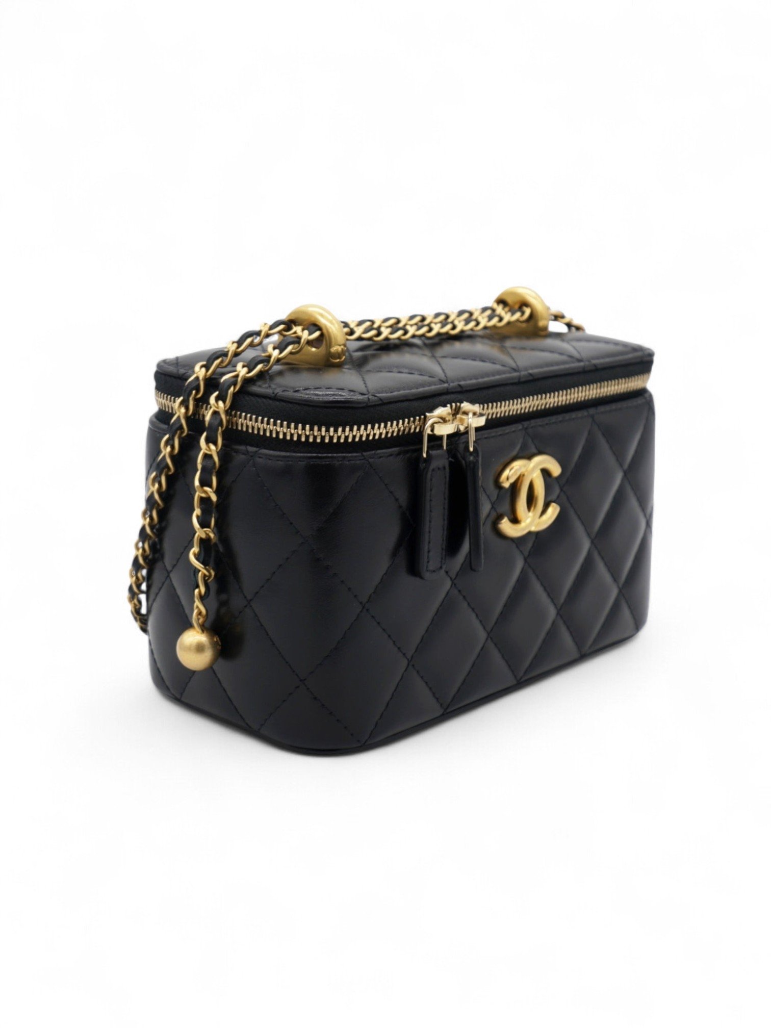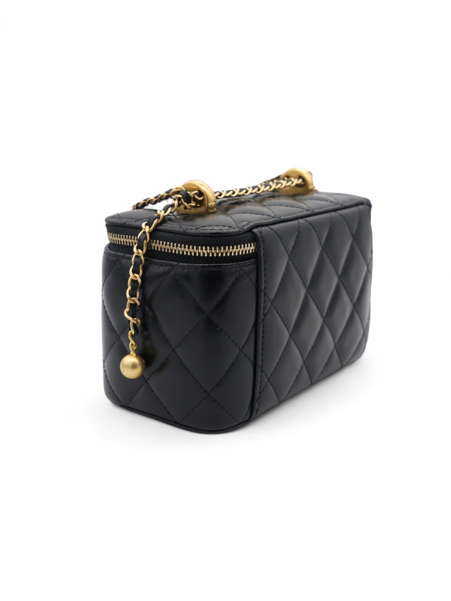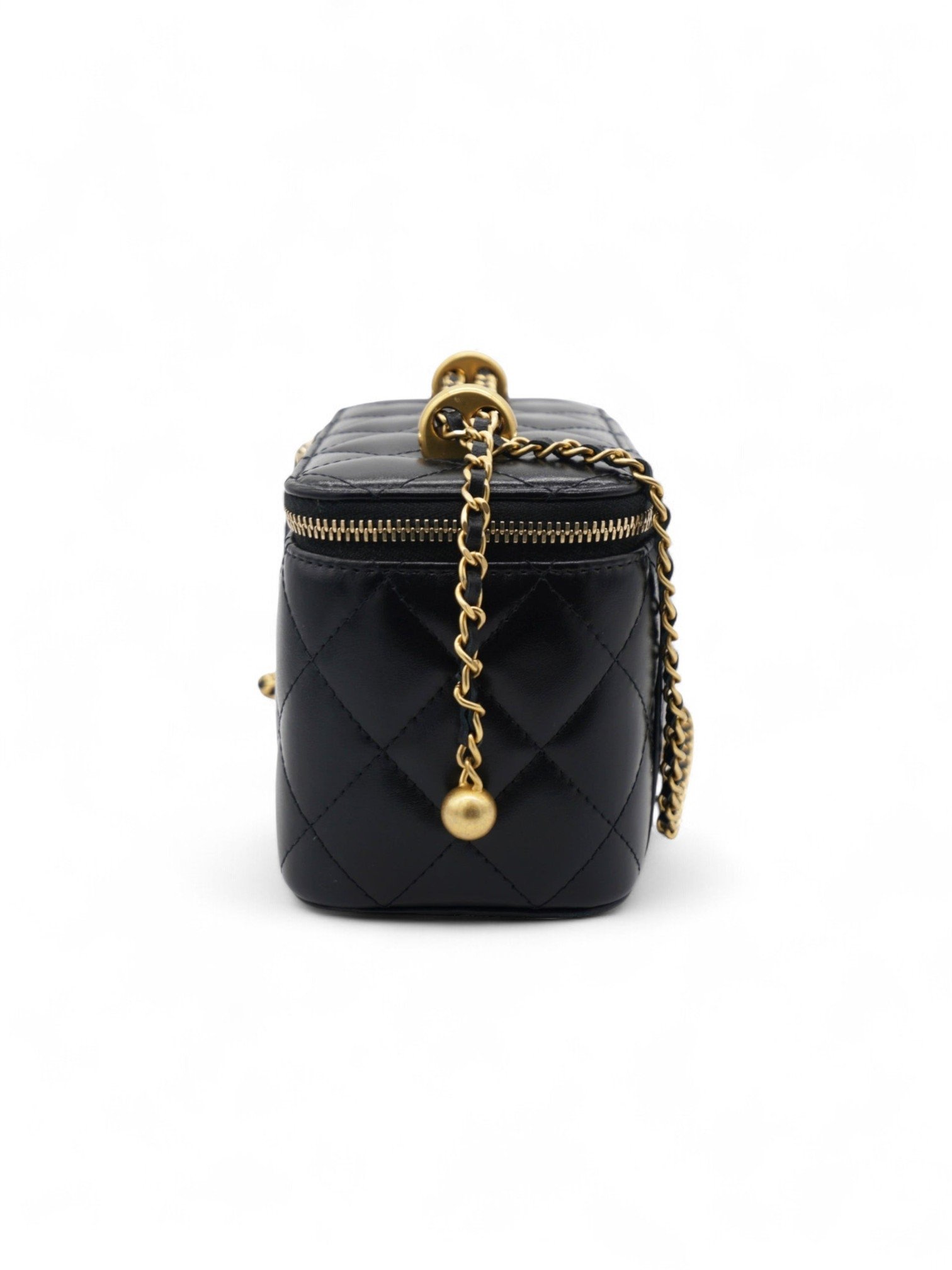 Chanel Lambskin Quilted Small Pearl Crush Vanity Case With Chain + Brand Box , size 17*10 y