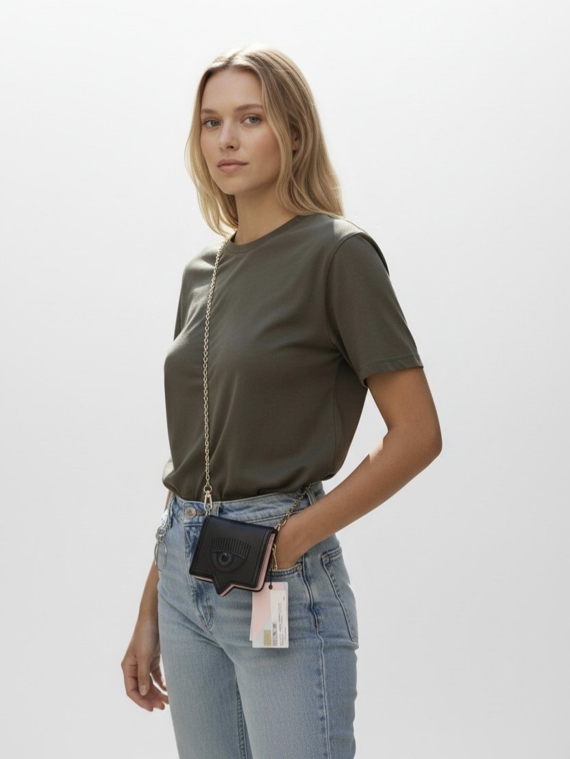 Chiara Ferragni Eye like embossed wallet On Chain + Brand Box , size 13*10cm