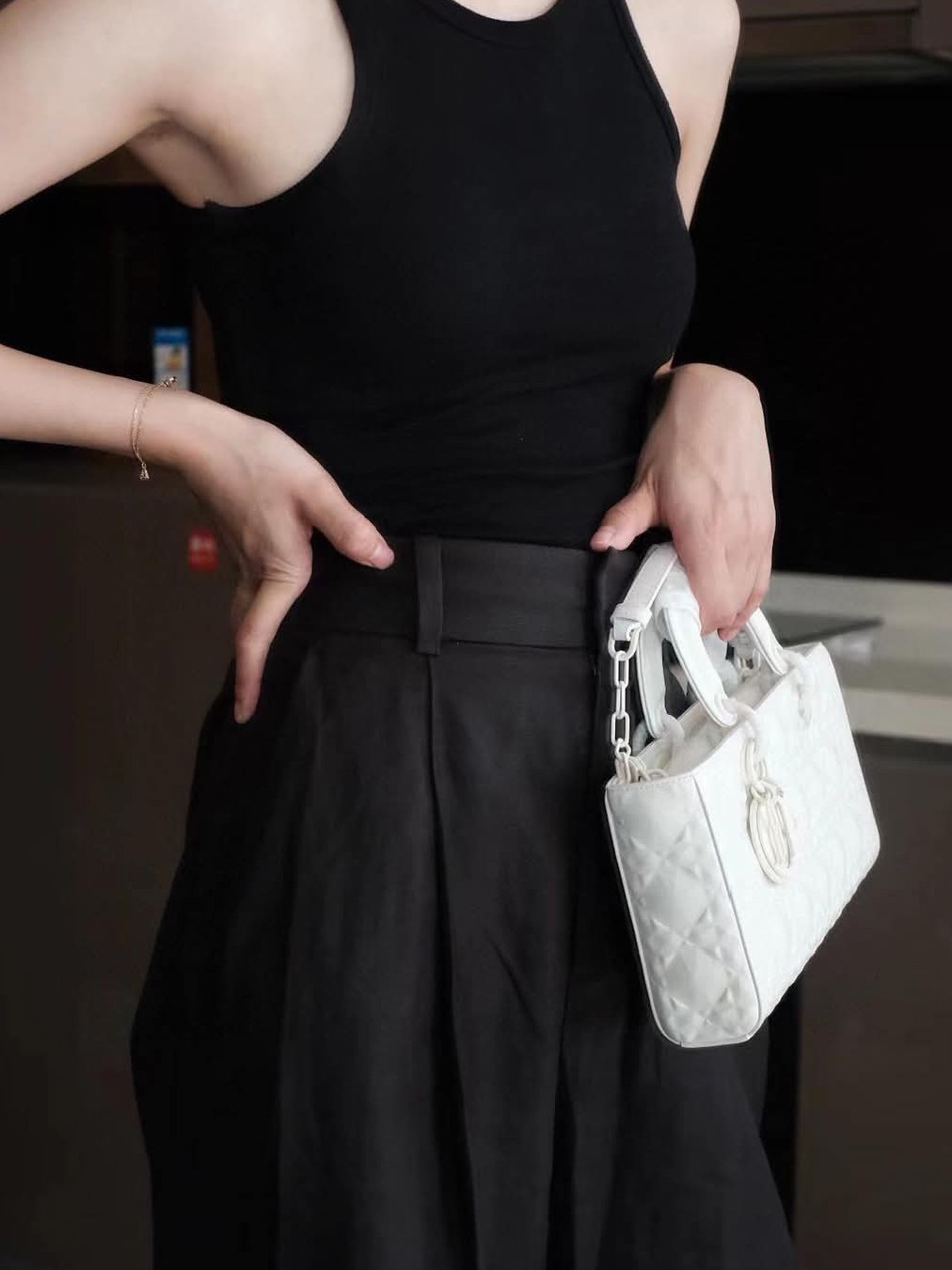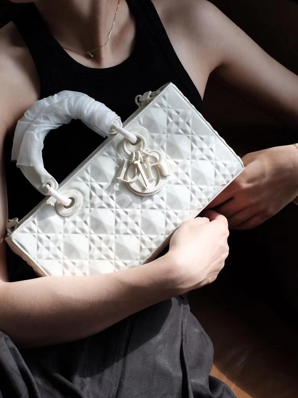 Christian Dior Calfskin Cannage Diamond Medium Lady D-Joy + Brand Box, Size 26*13