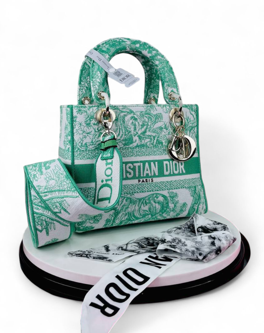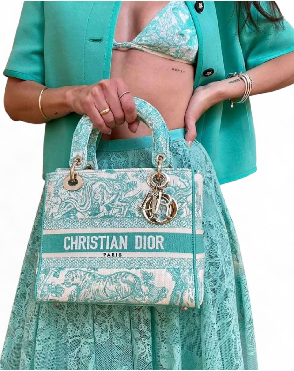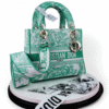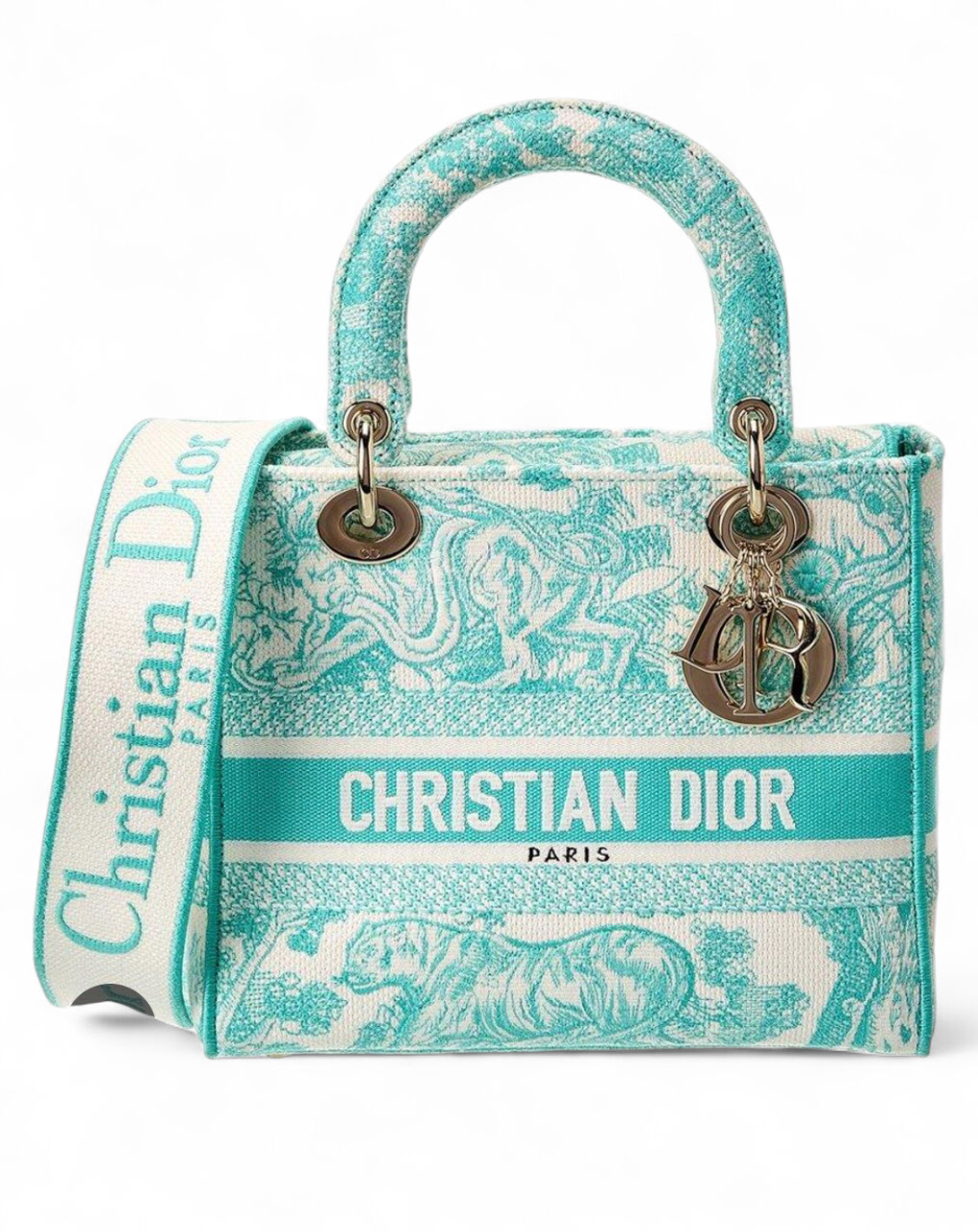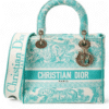 Christian Dior Canvas Toile De Jouy Embroidered Medium Lady D Lite Aquamarina + Brand Box , size 24*20