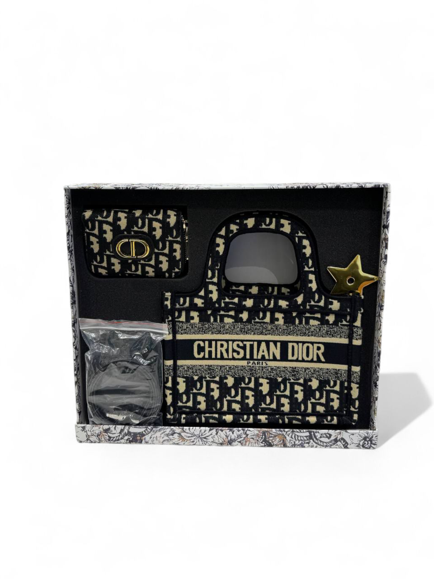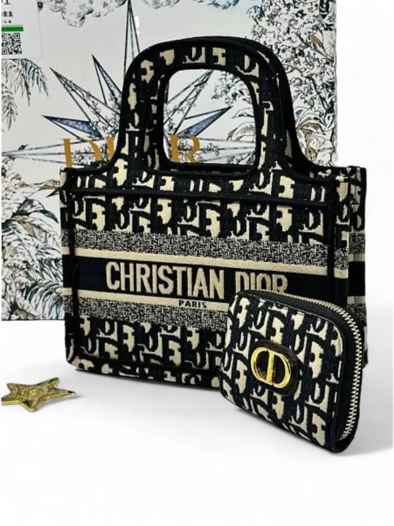 Christian Dior Gift Box Book velvet tote size 25*19 with zip around wallet + Brand Box