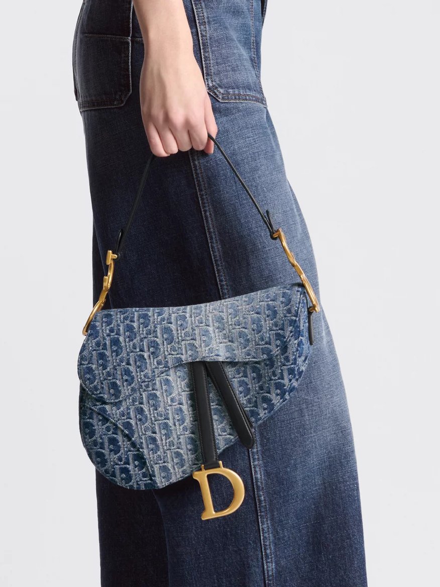 Christian Dior Saddle Bag with StrapBlue Denim Dior Oblique Jacquard + Brand Box , size 27*18
