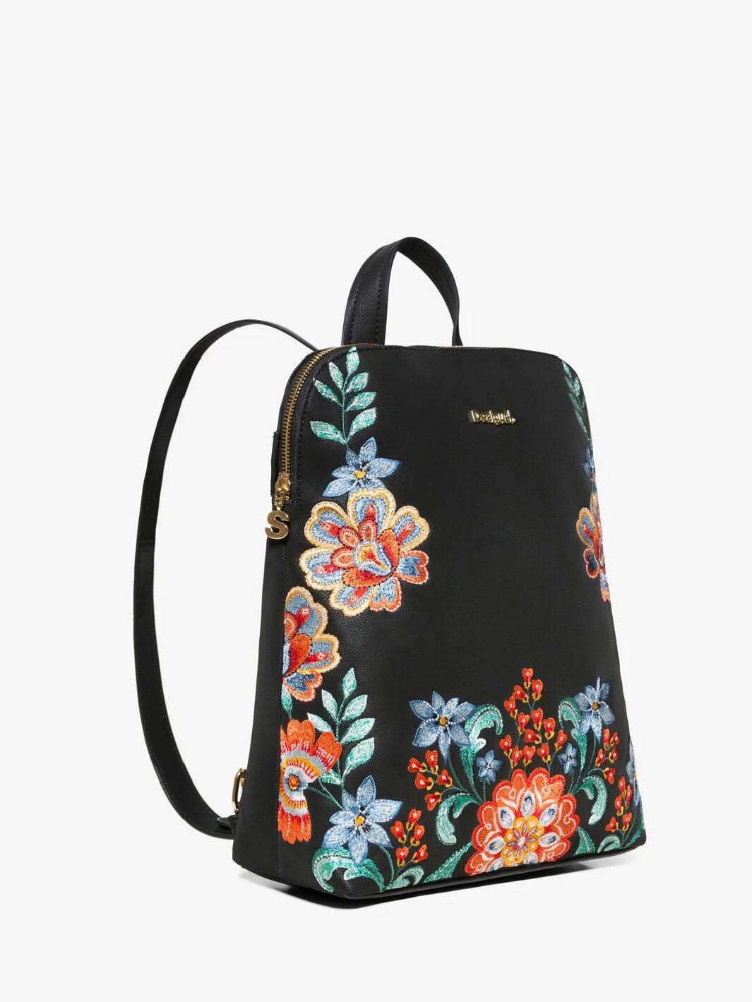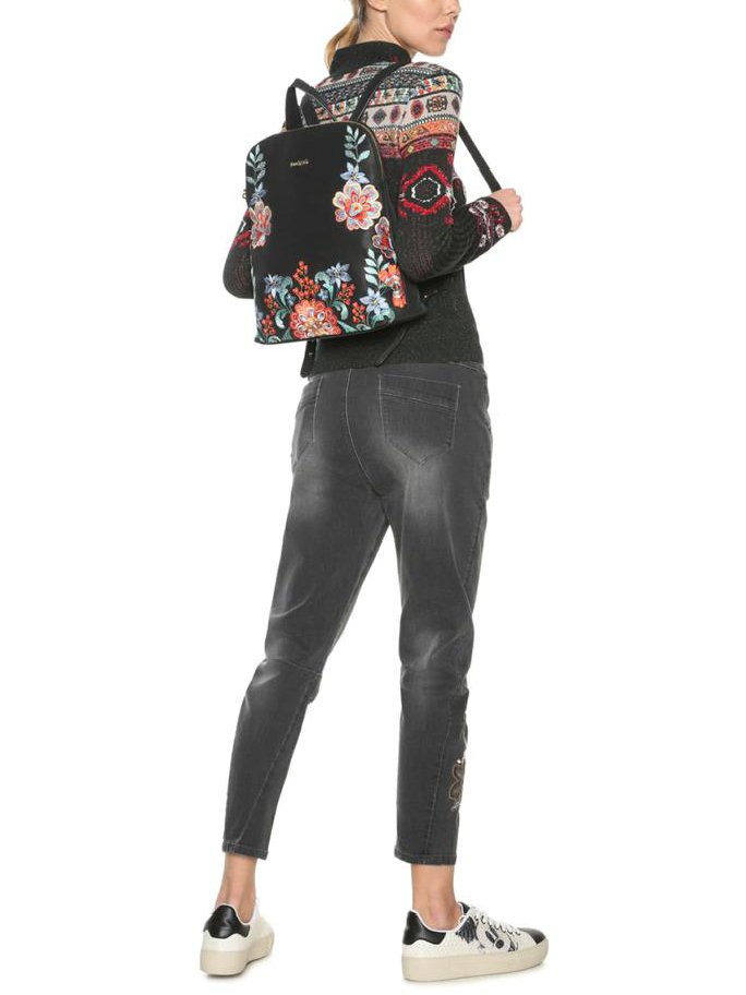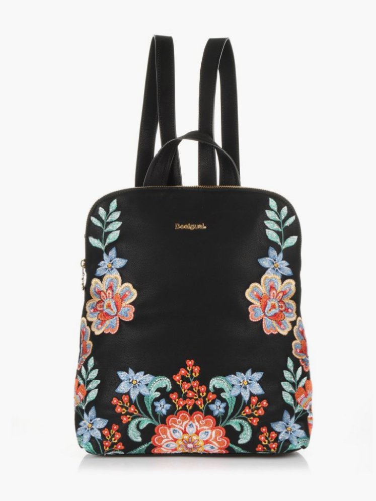 Desigual Floral embroideries Leather backpack , size 29*33