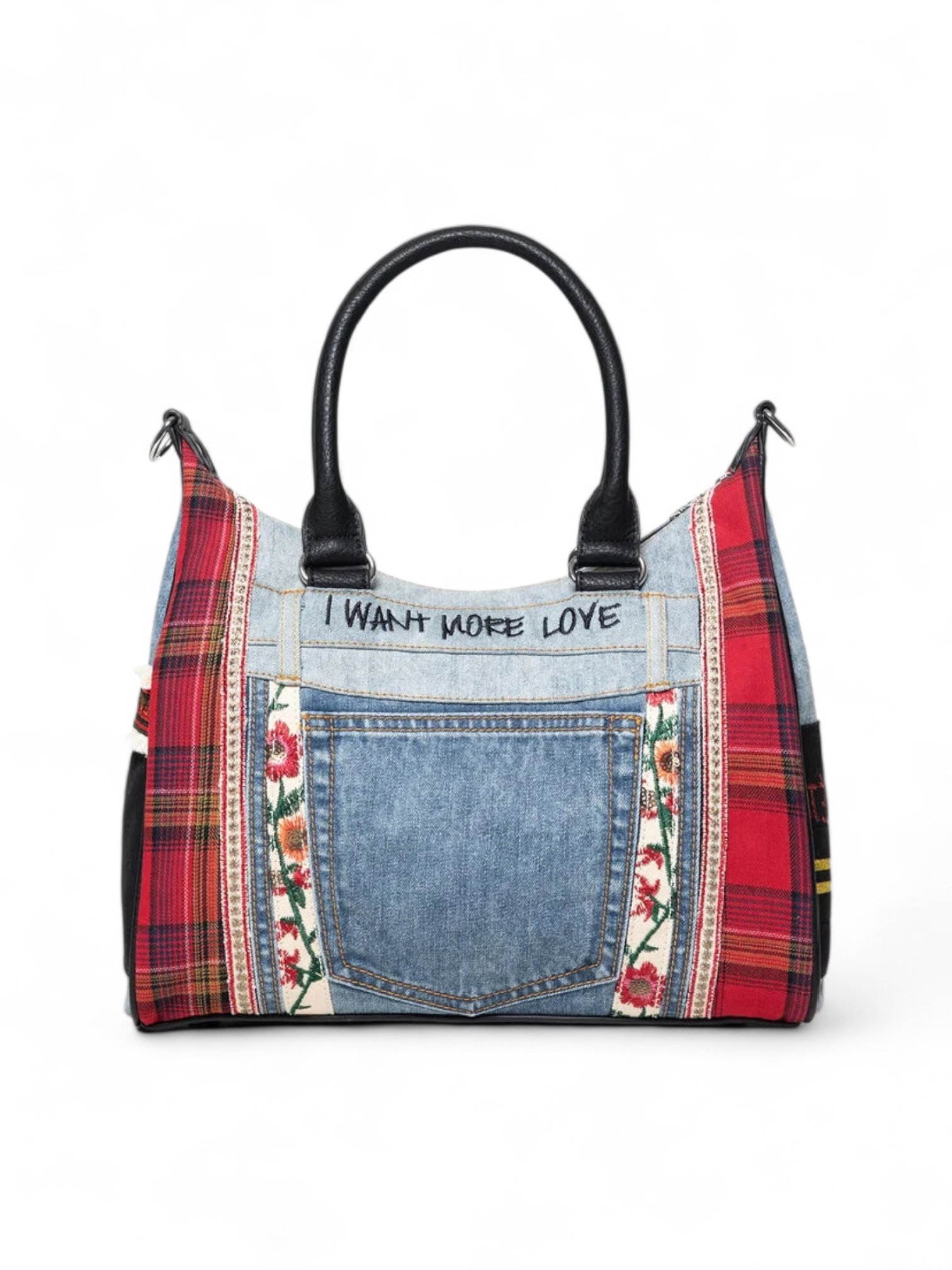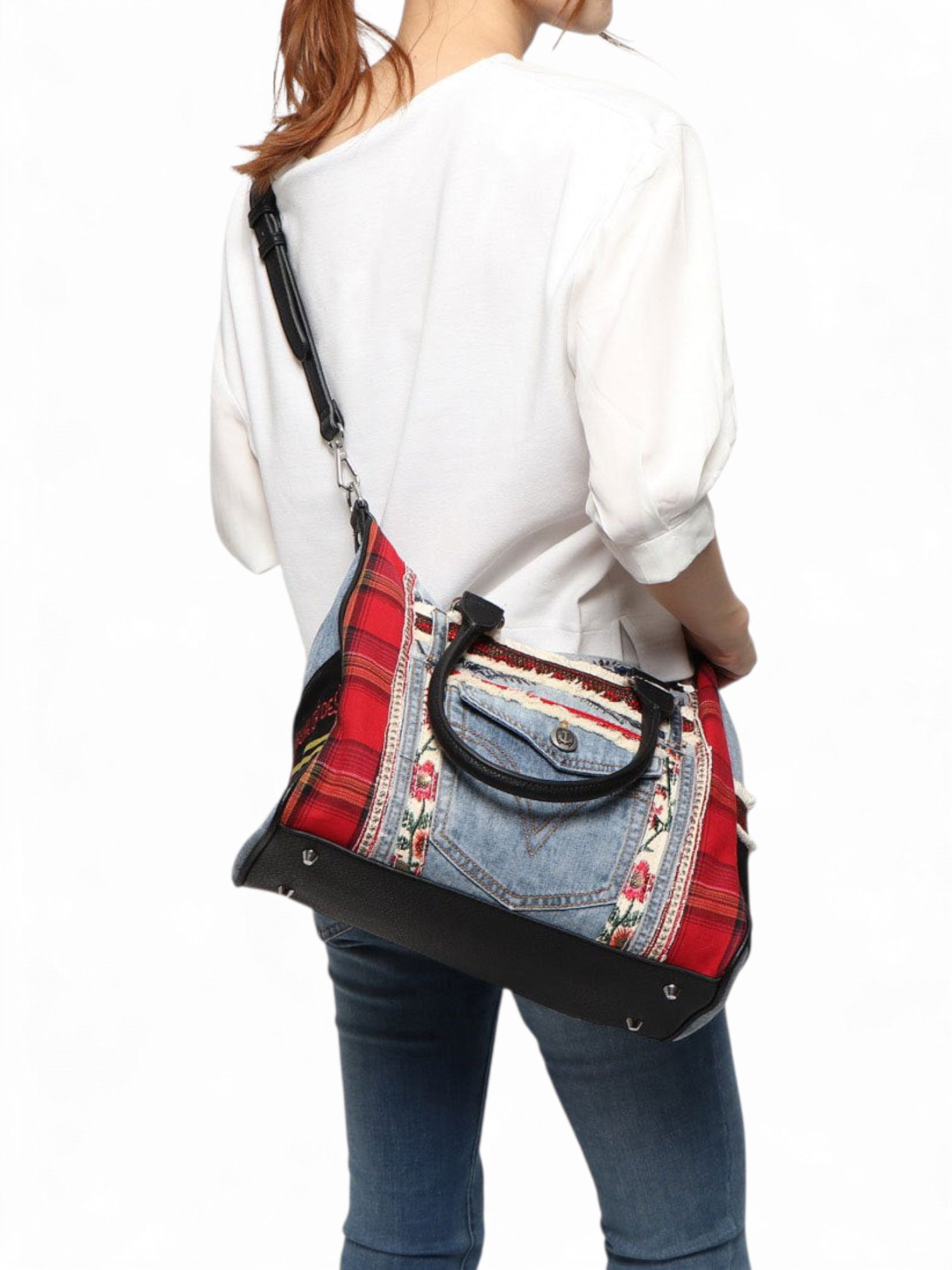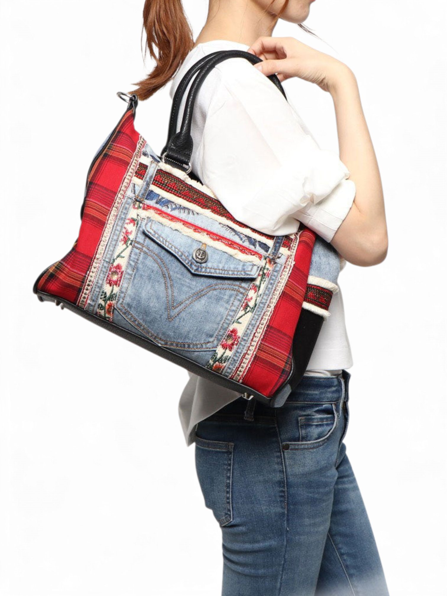 Desigual Patches red and denim shoulder bag , size 32*25