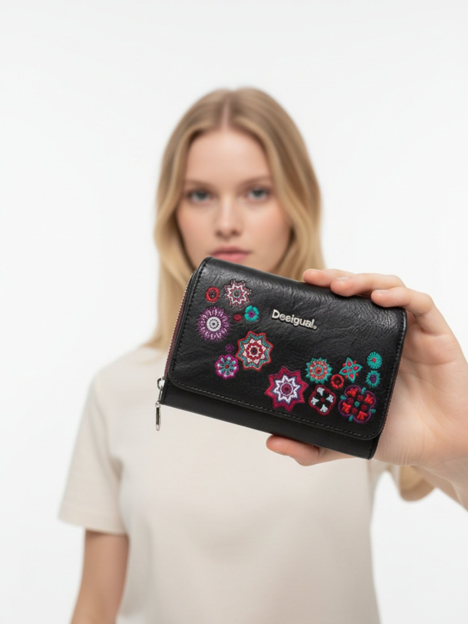 DESIGUAL Small embroidered coin purse Wallet , size 14*10