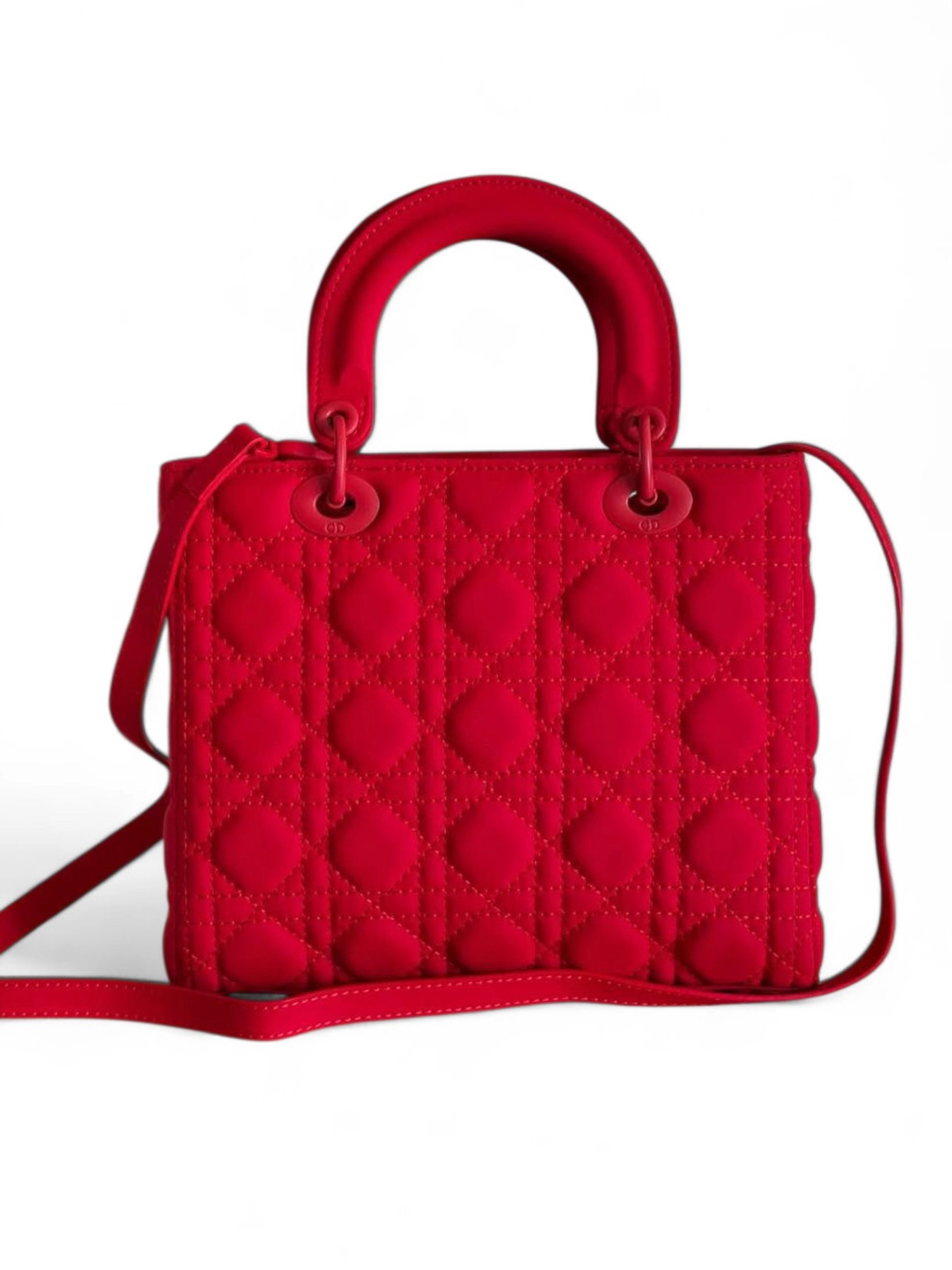 Dior Medium Lady Dior Bag Red Ultramatte Calfskin + Brand Box , size 24*21 .. ofr