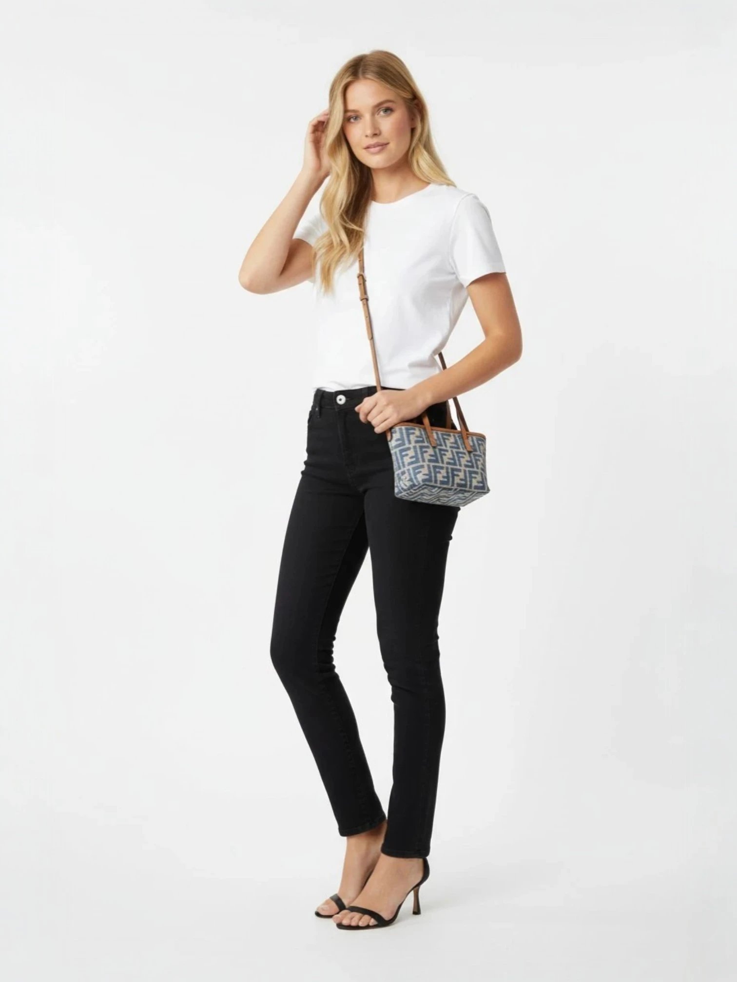Fendi Light Blue Ff Jacquard Mini Bag + Brand Box , size 20*15 .. ofr