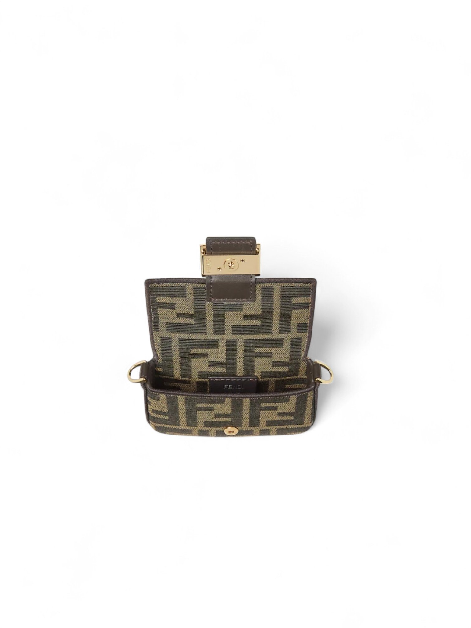 FENDI Nano Baguette Brown FF jacquard fabric + Brand Box , size 11*6 .. ofr