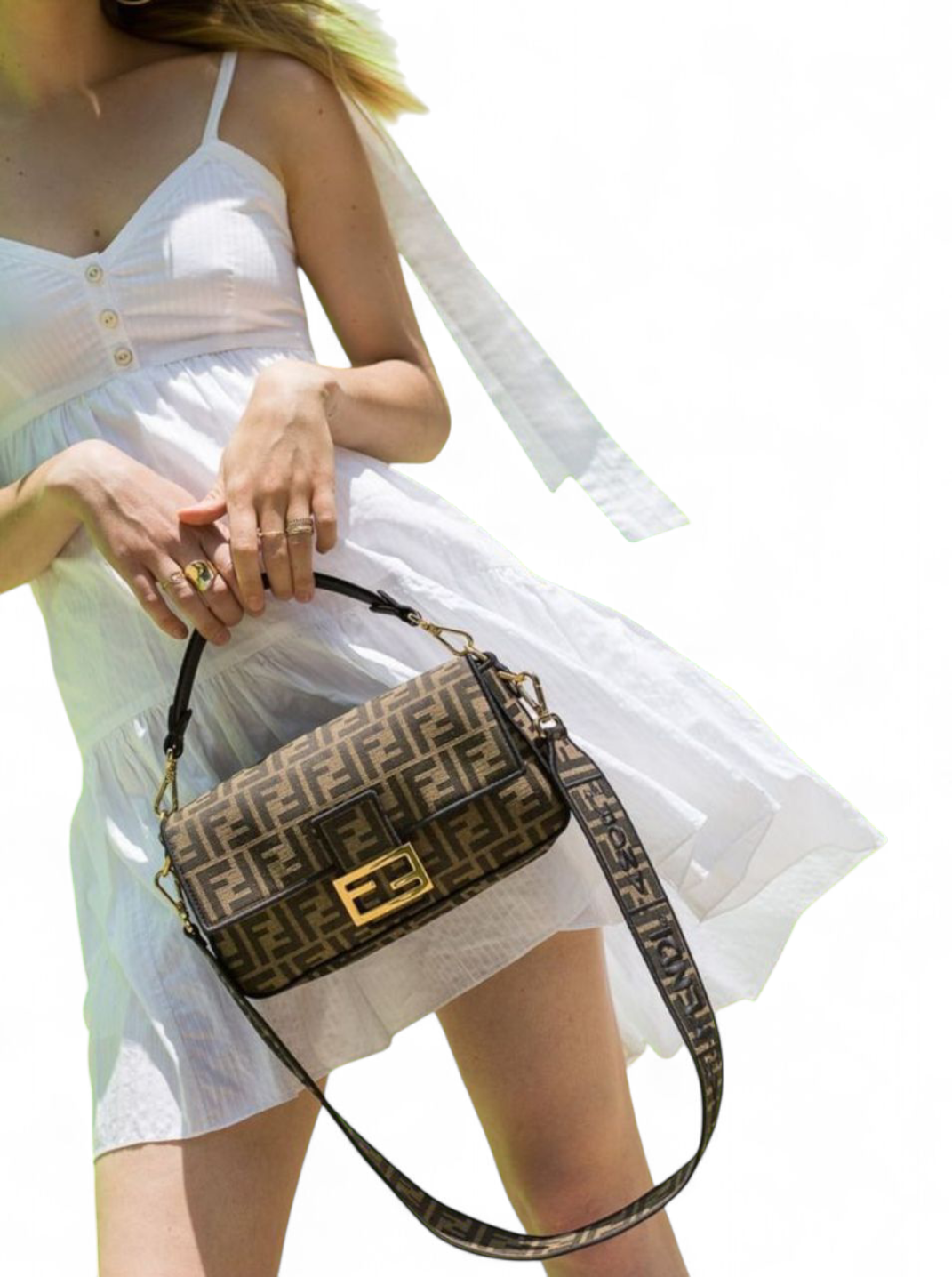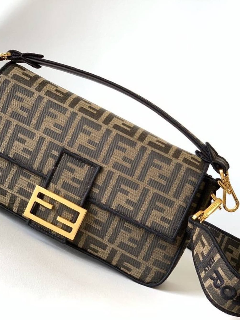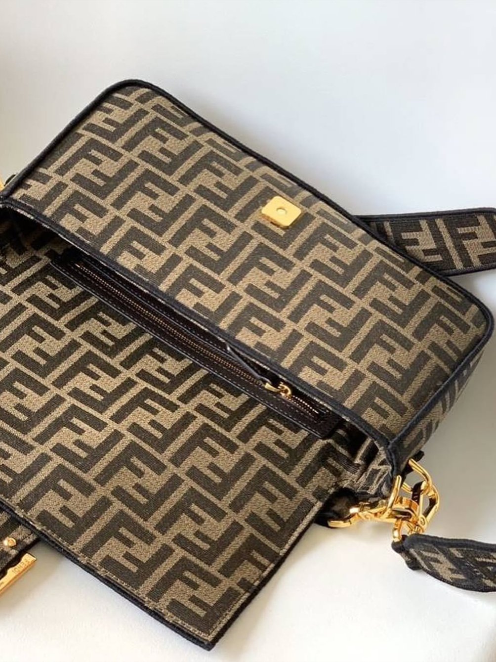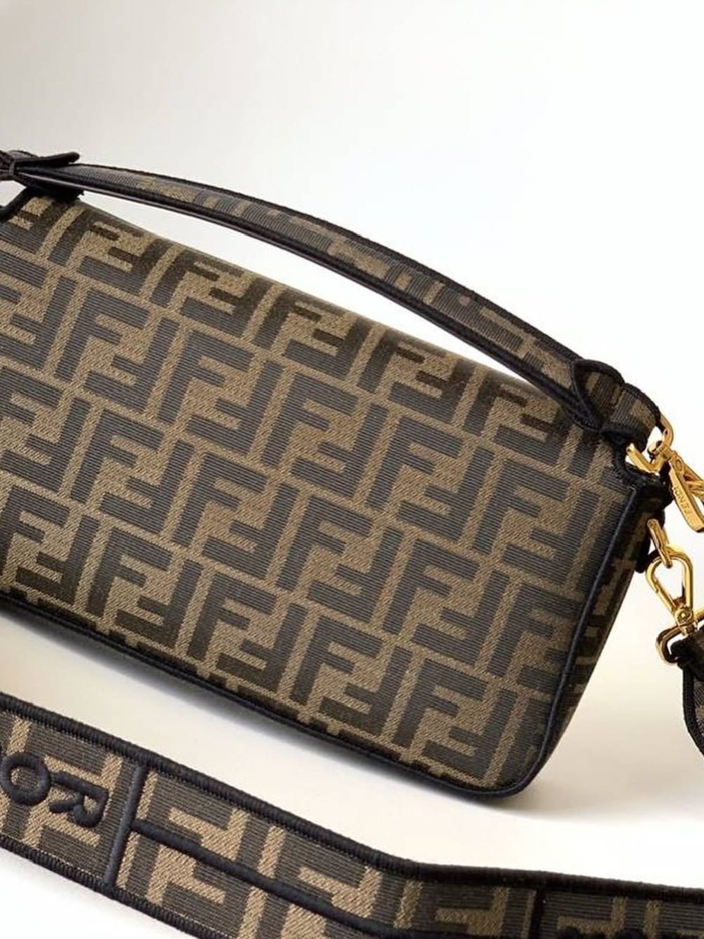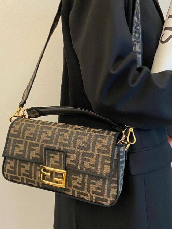 Fendi Tobacco Zucca Jacquard Canvas Baguette Bag + Brand Box , size 27*16