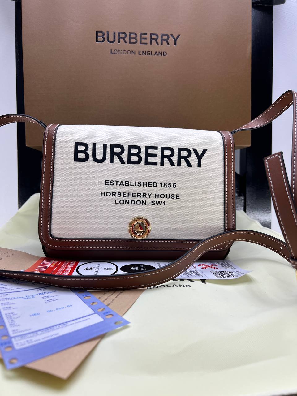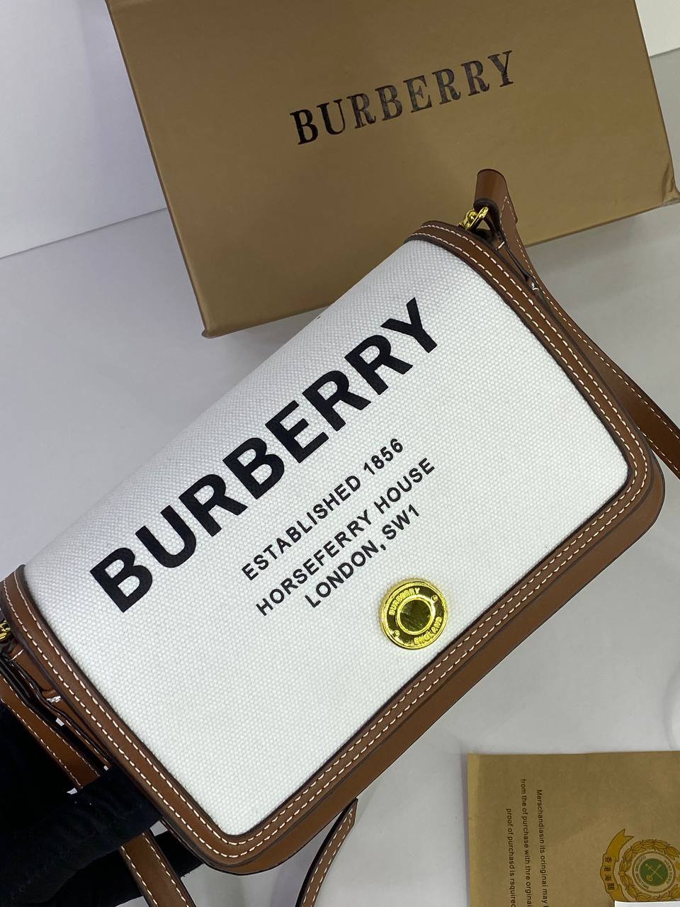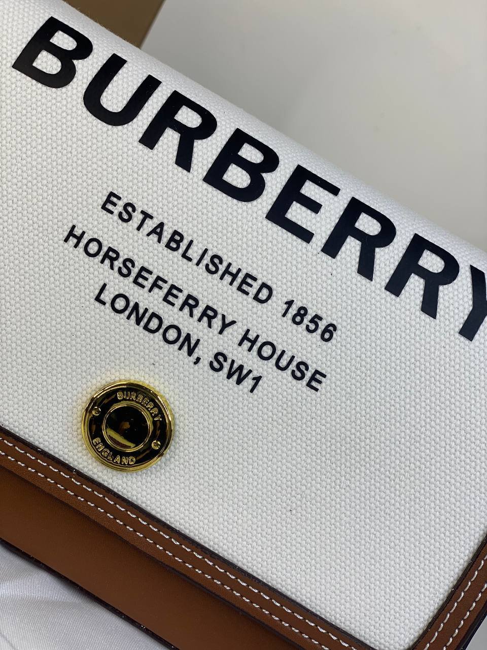 BURBERRY Cotton Canvas Horseferry Print bag + Brand Box , size 23×15