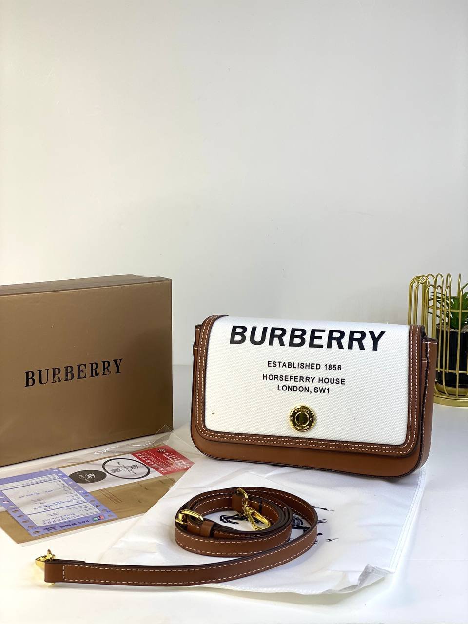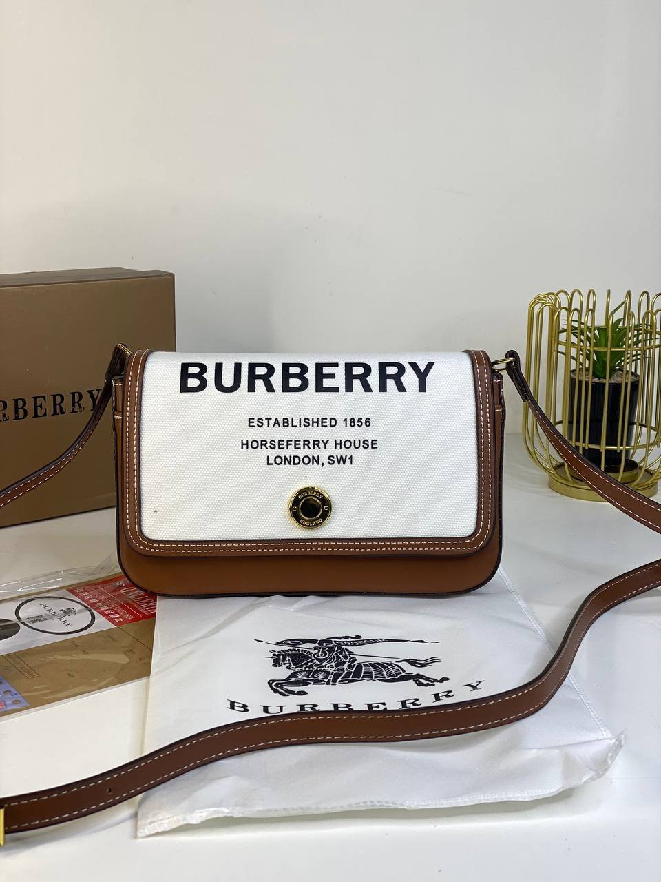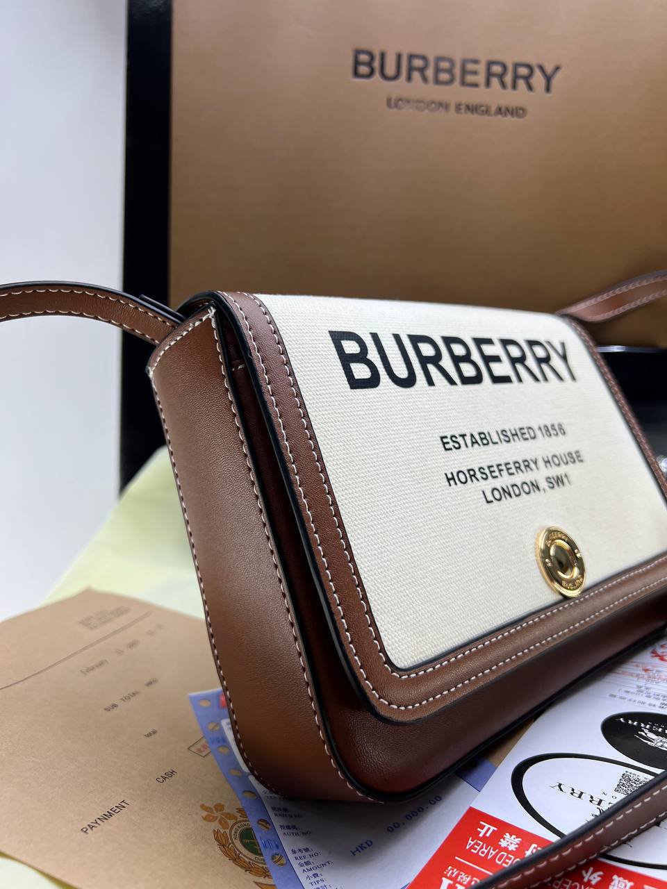 BURBERRY Cotton Canvas Horseferry Print bag + Brand Box , size 23×15