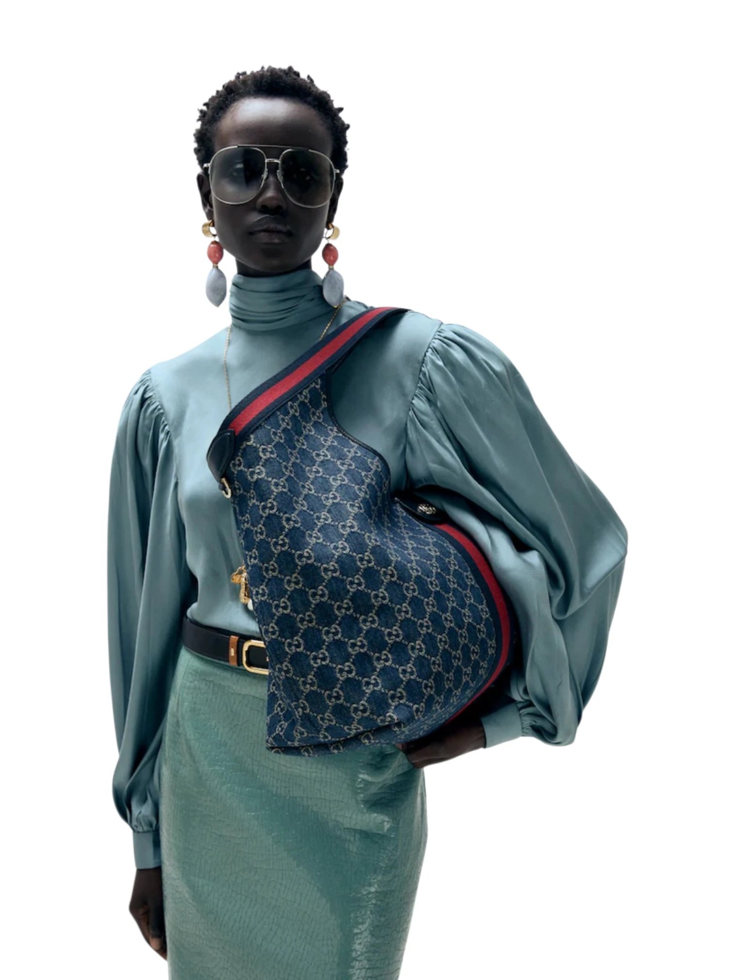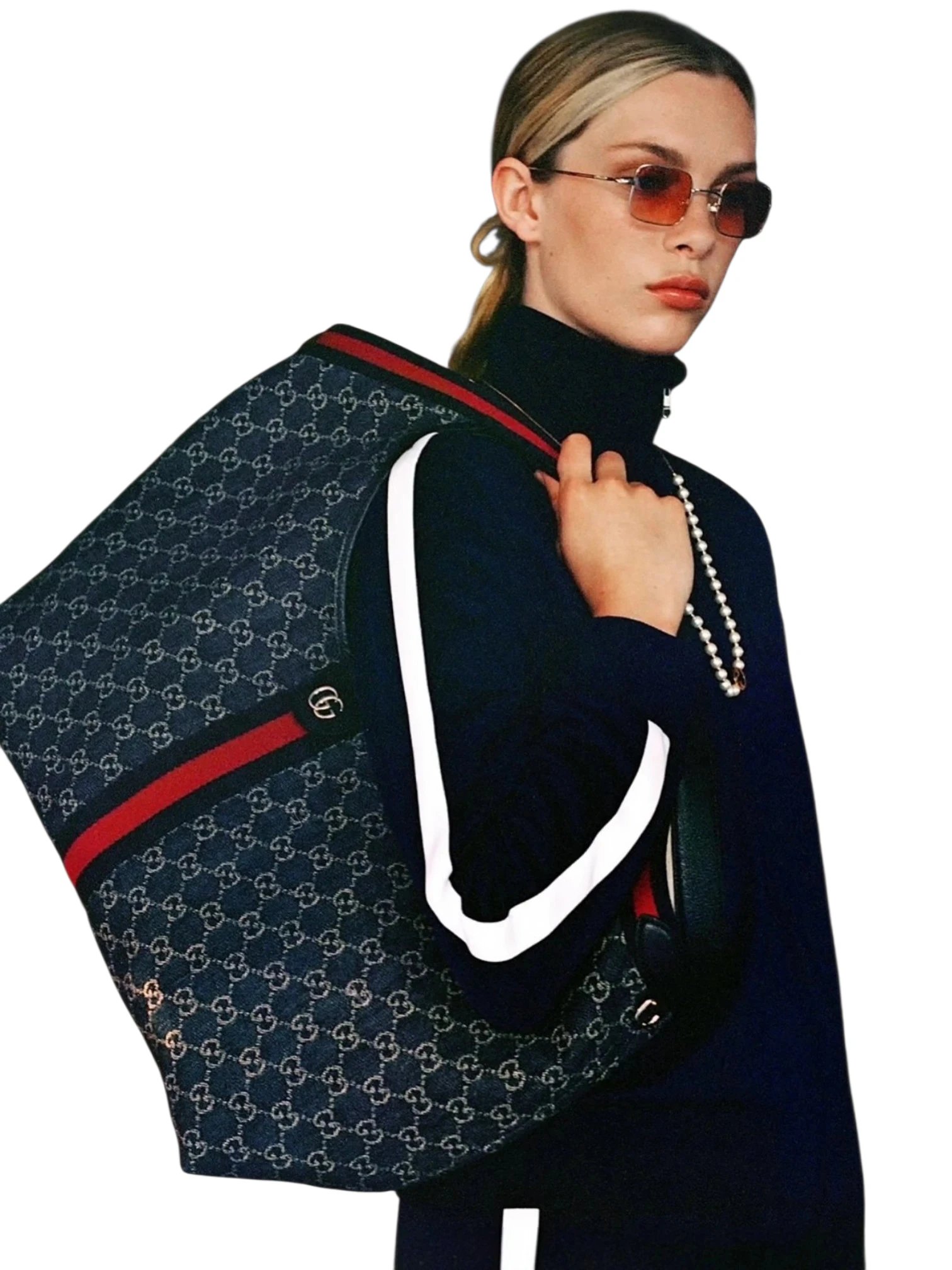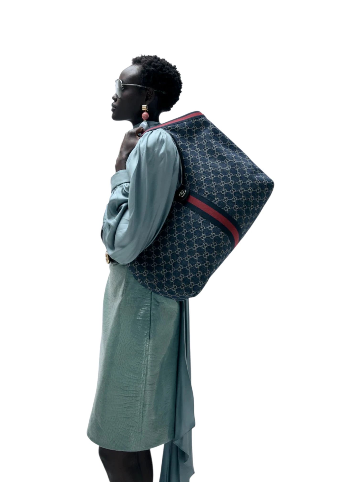 Gucci Giglio large tote bag blue and white GG denim, size 45*30
