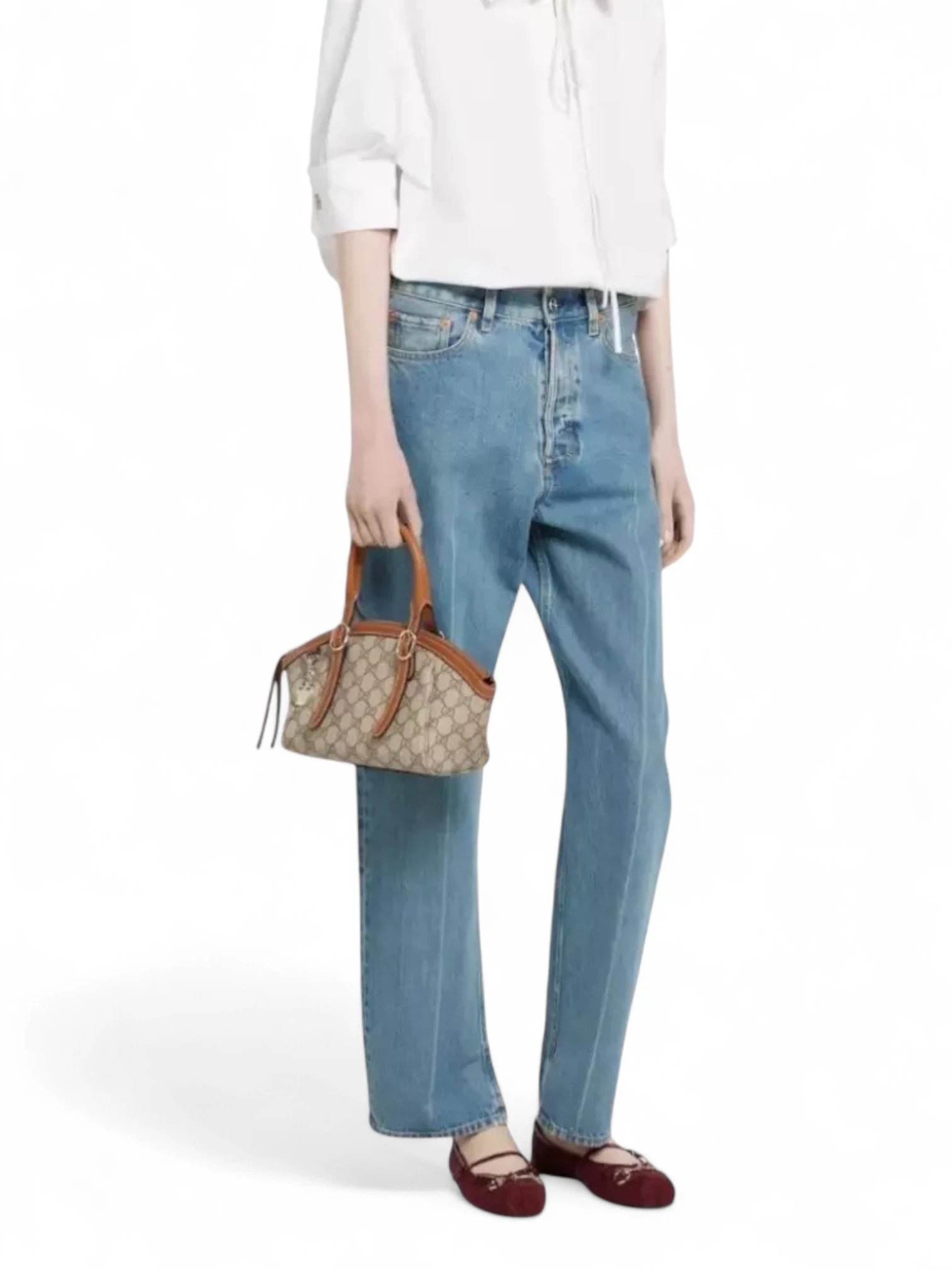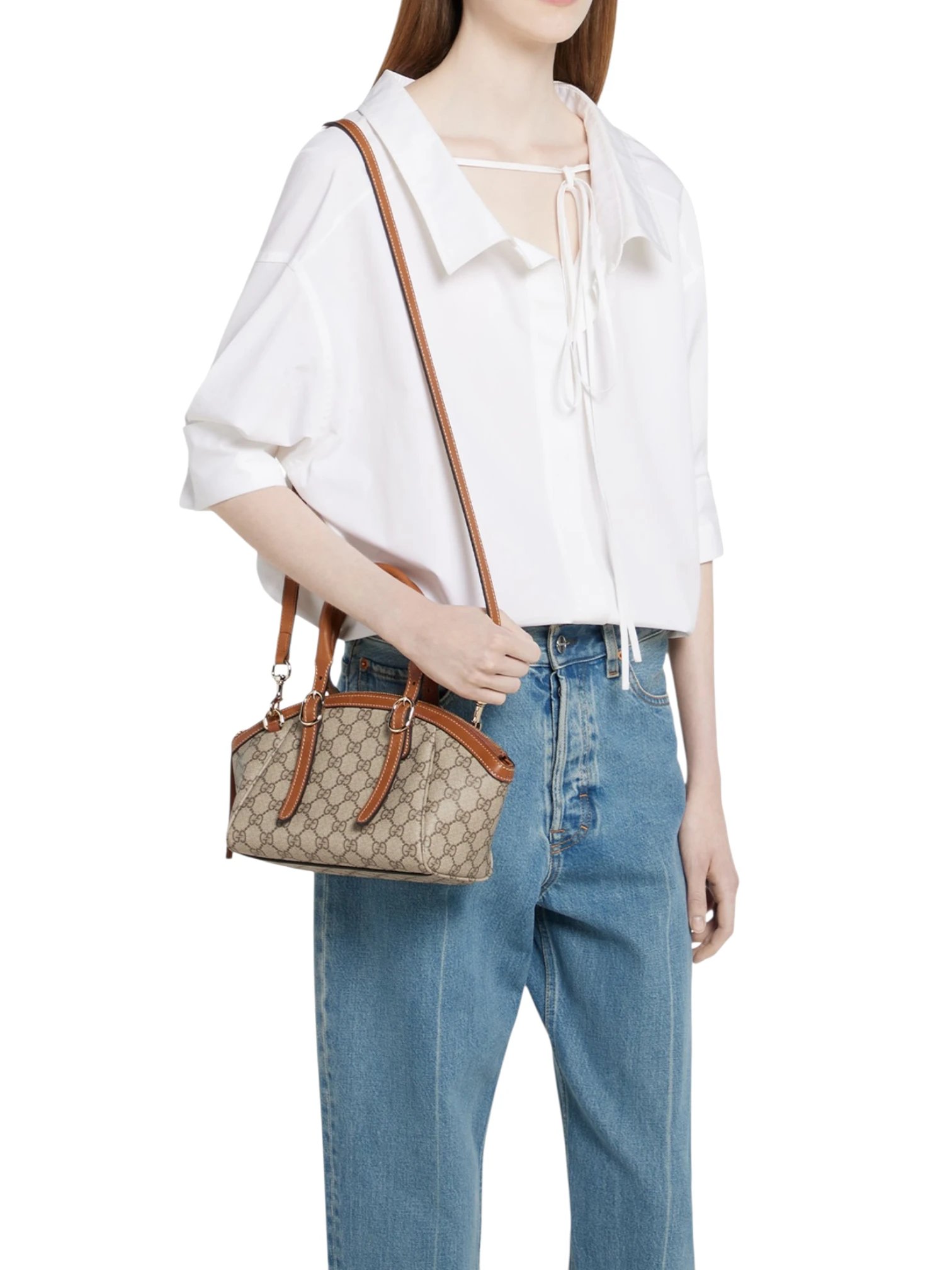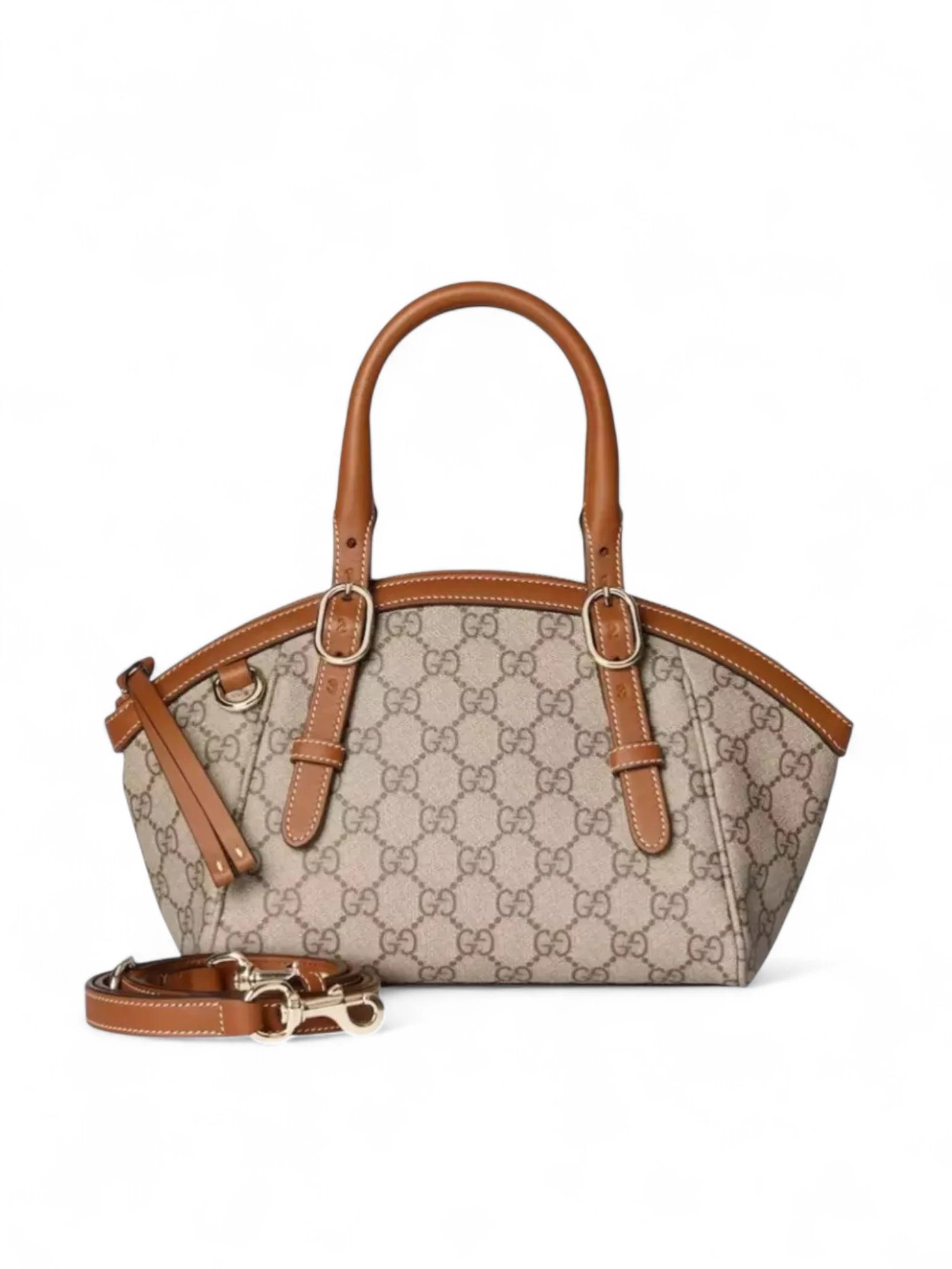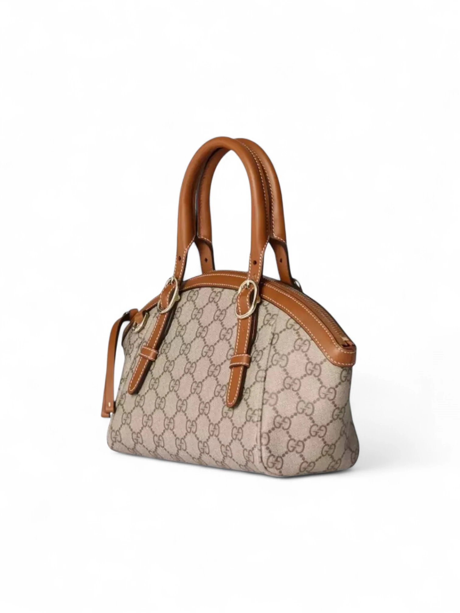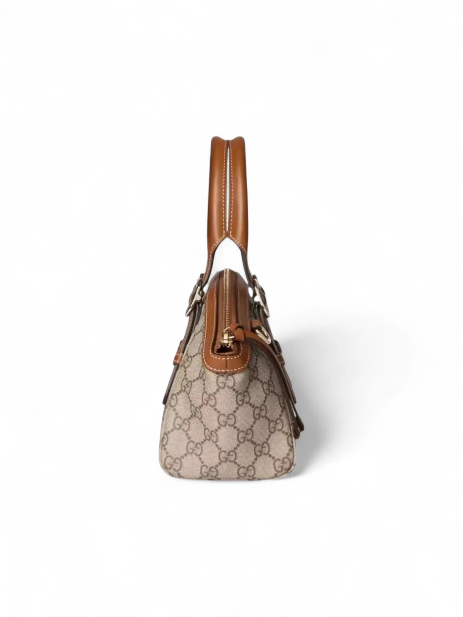 Gucci GG Emblem Monogram Small Top Handle Bag Beige Brown , size 23*12