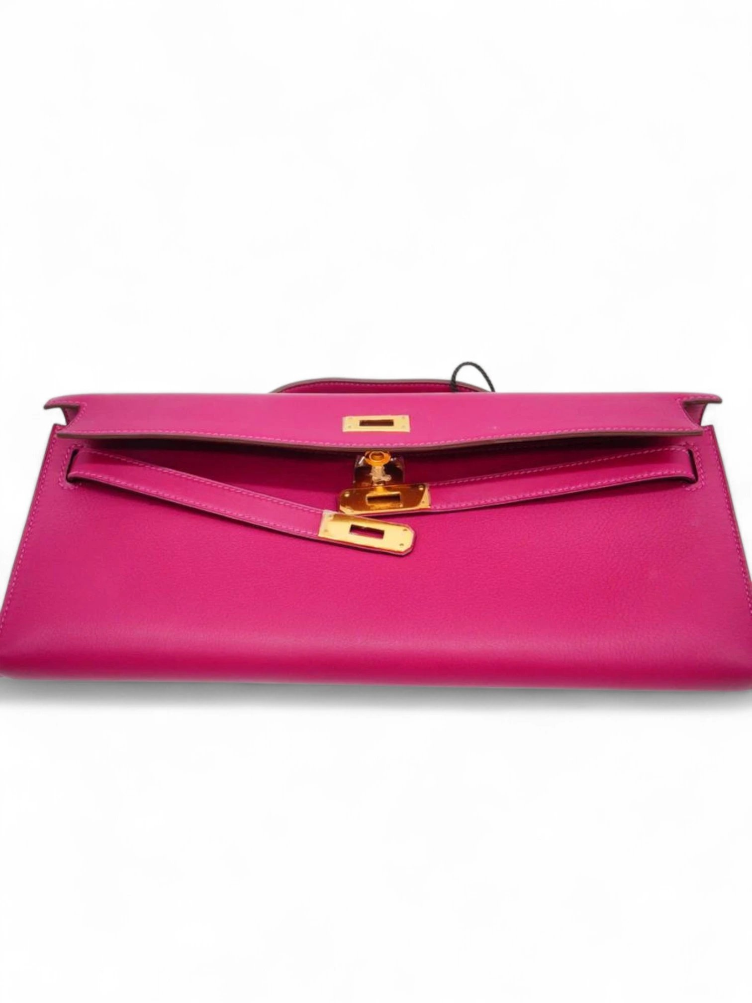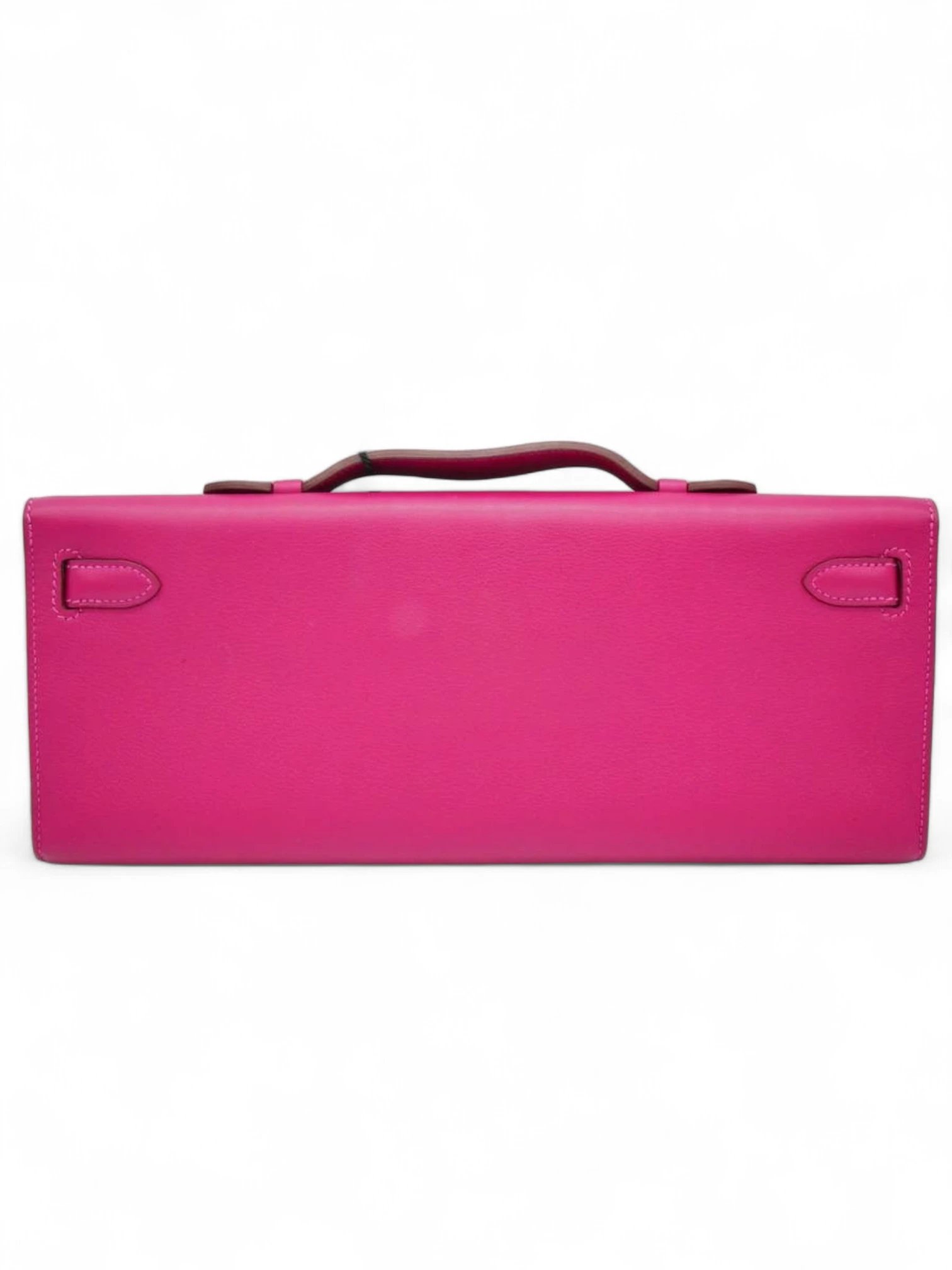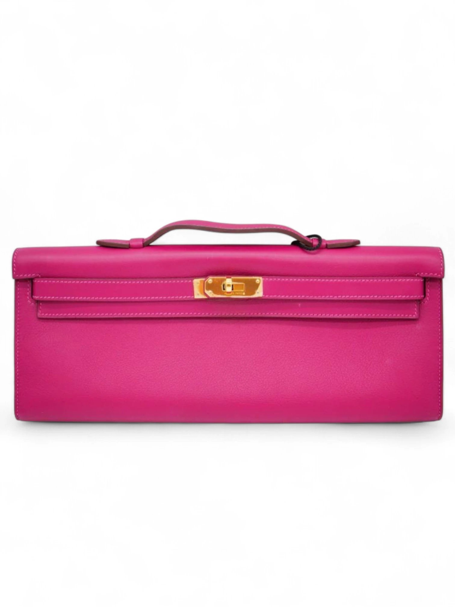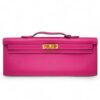 Hermes Fuchsia Pink Swift Leather Kelly Cut Pochette + Brand Box , size 31*13 .. ofr