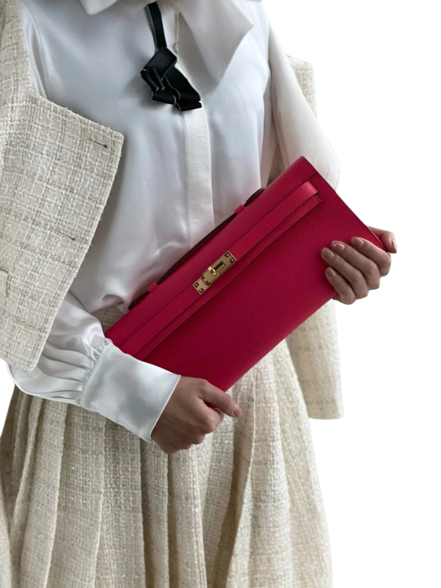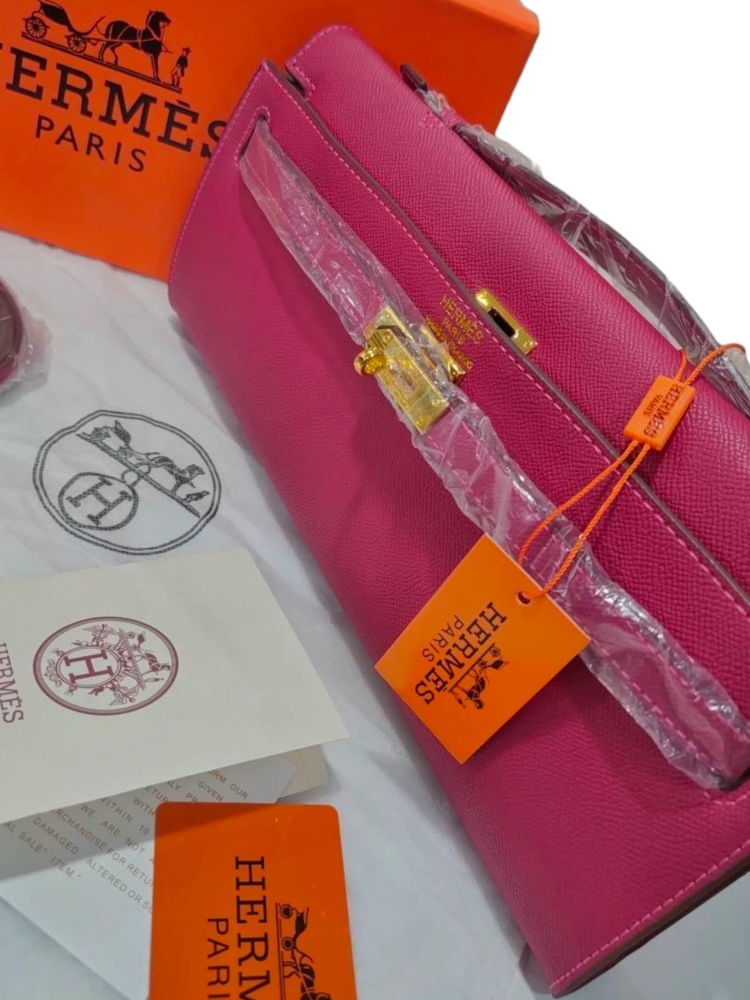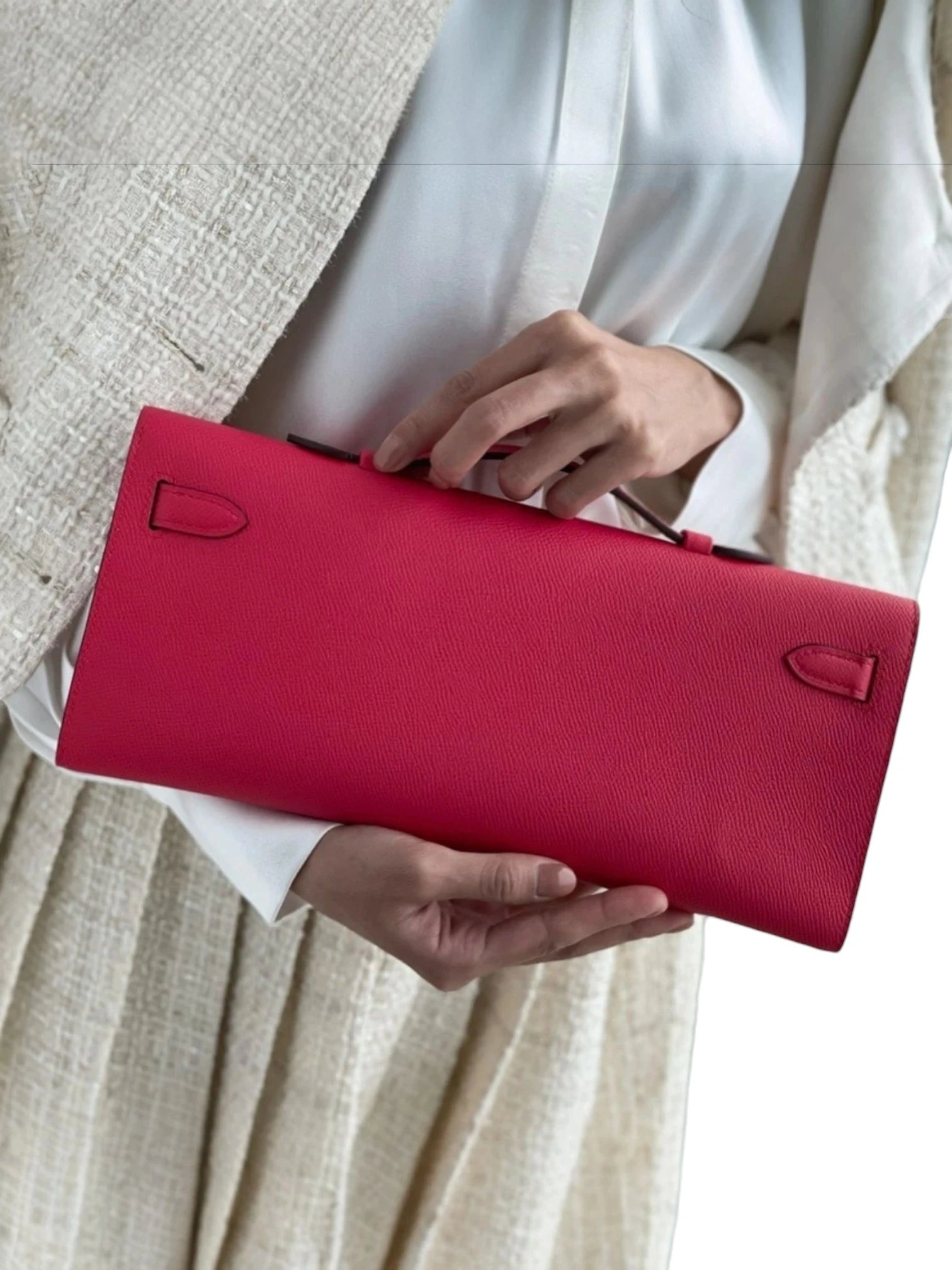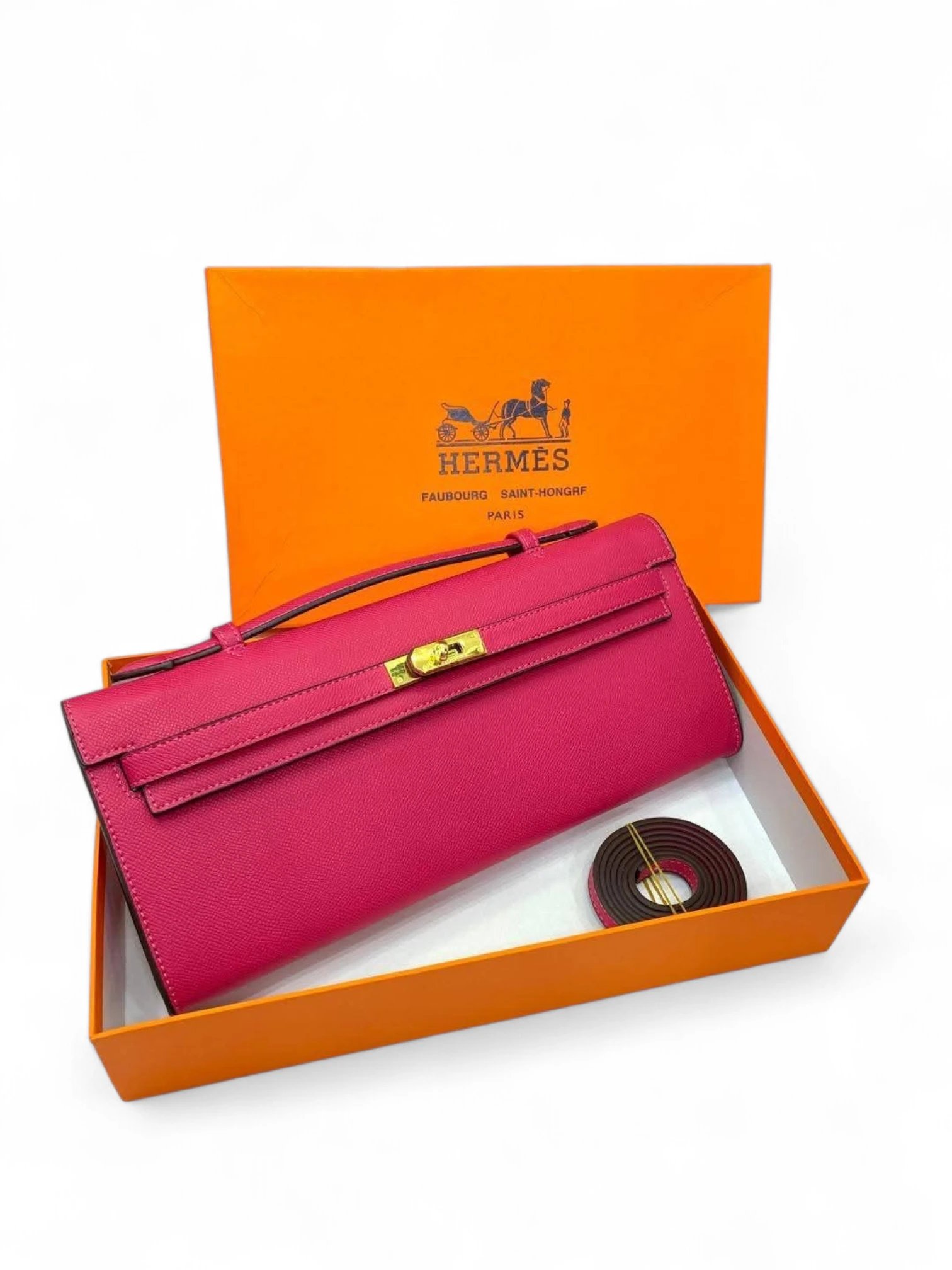 Hermes Fuchsia Pink Swift Leather Kelly Cut Pochette + Brand Box , size 31*13 .. ofr