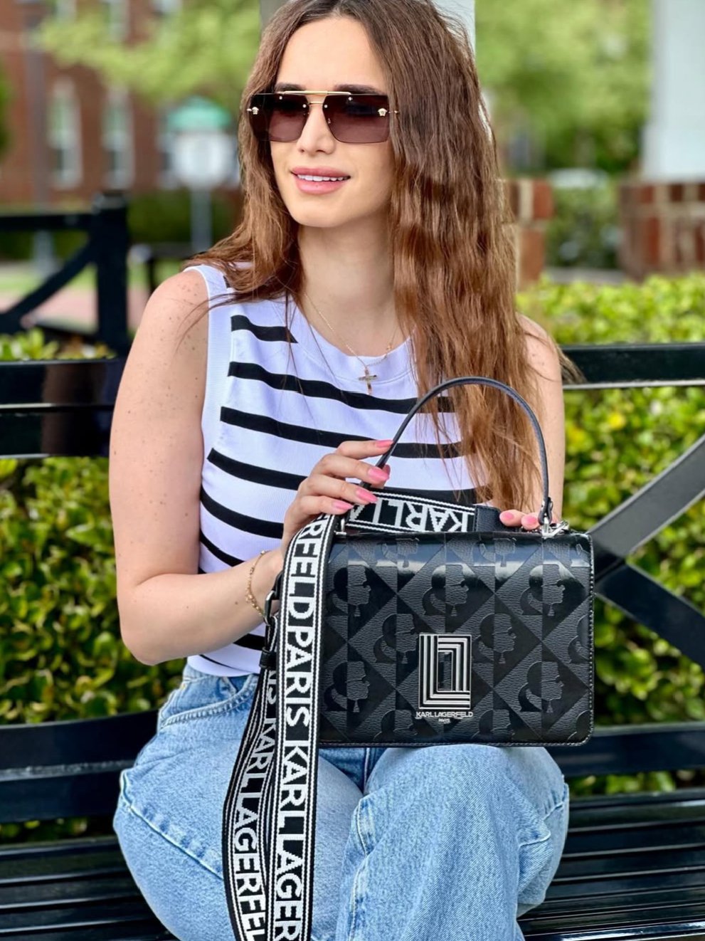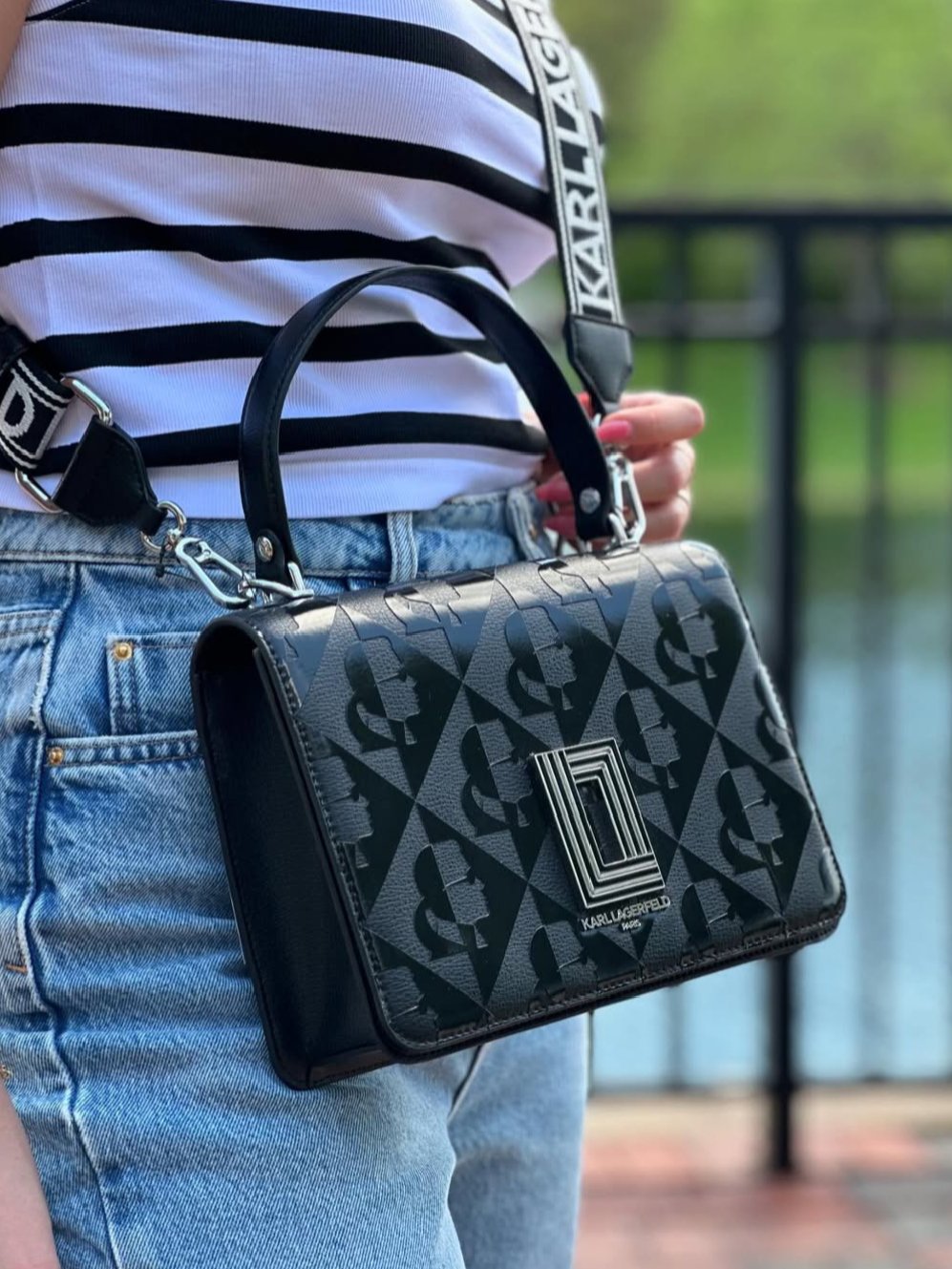 KARL LAGERFELD Black Simone Logo Satchel + Brand Box , size 24*15