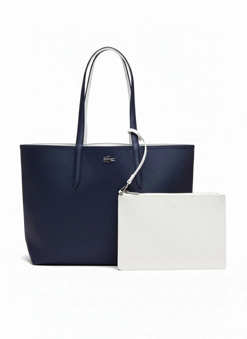 Lacoste Anna Large Reversible Shopping Bag with pouch navy blue white, size 47*28