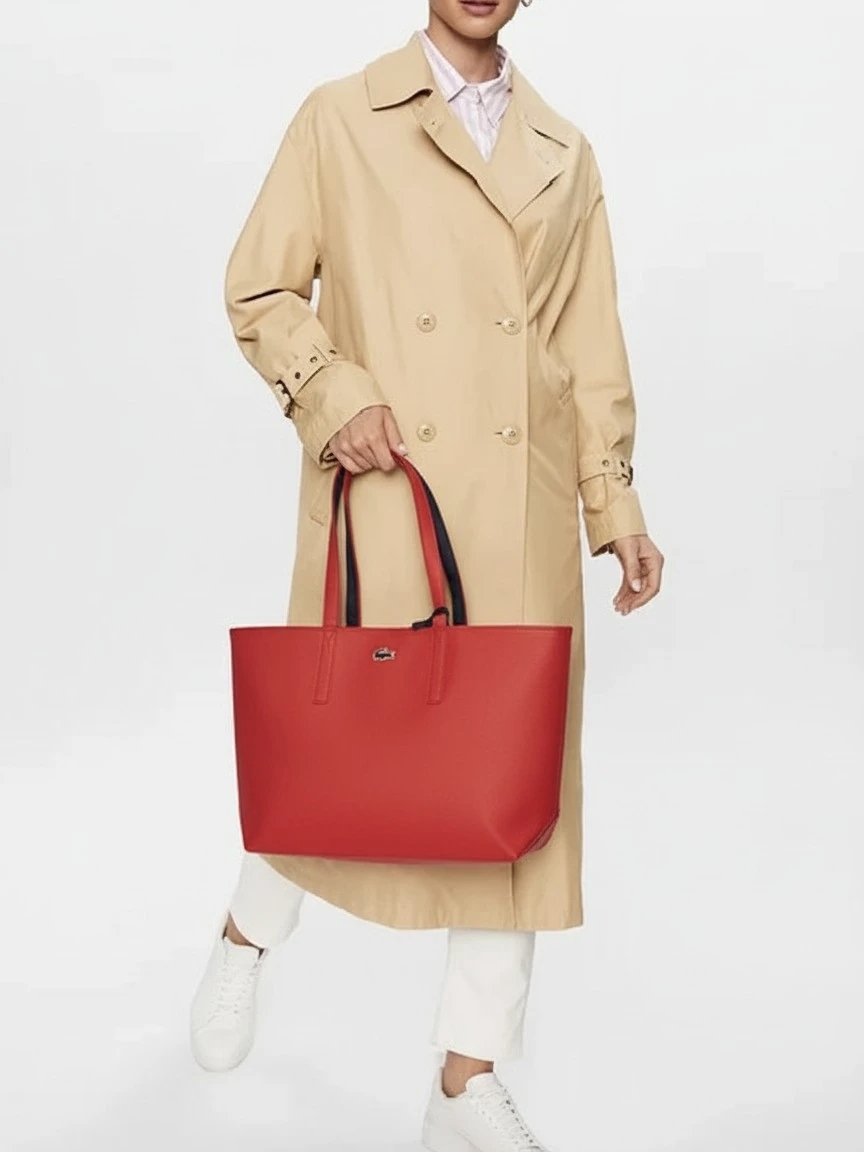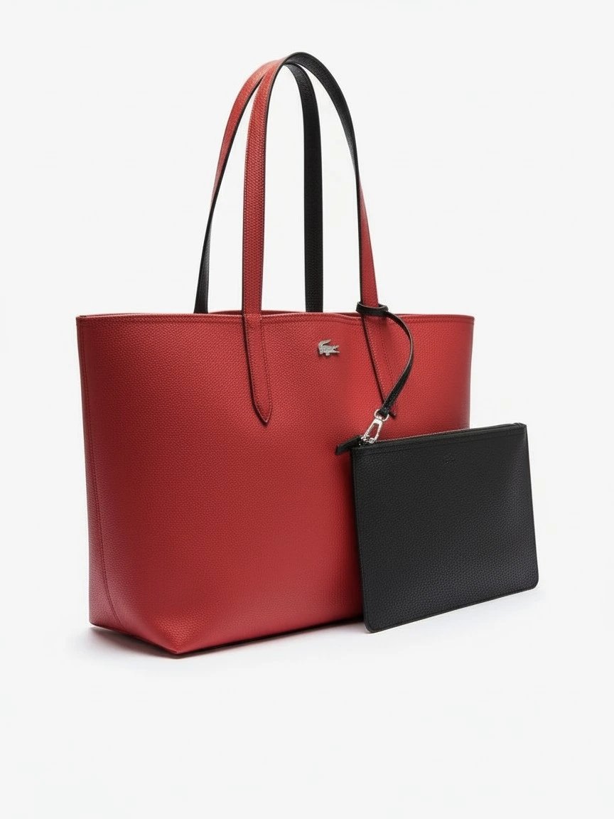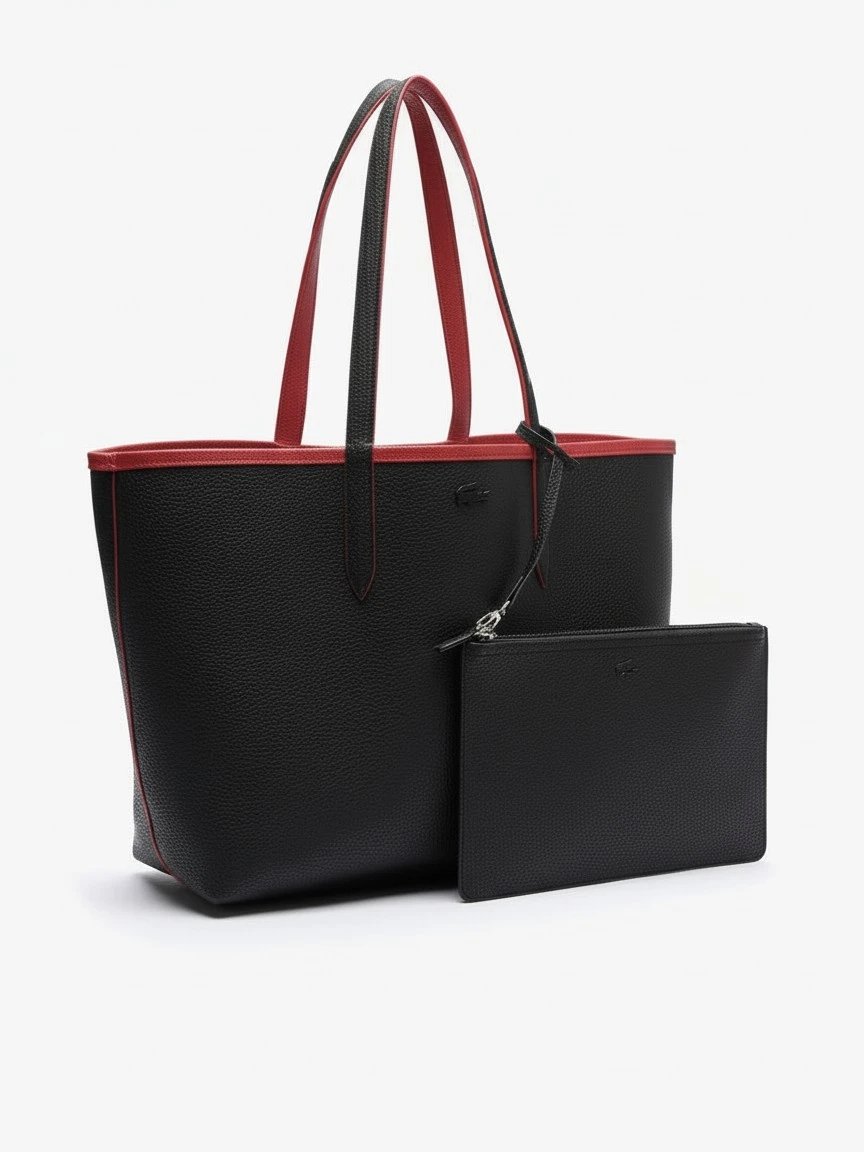 Lacoste Anna Large Reversible Shopping Bag with pouch red black , size 33*30