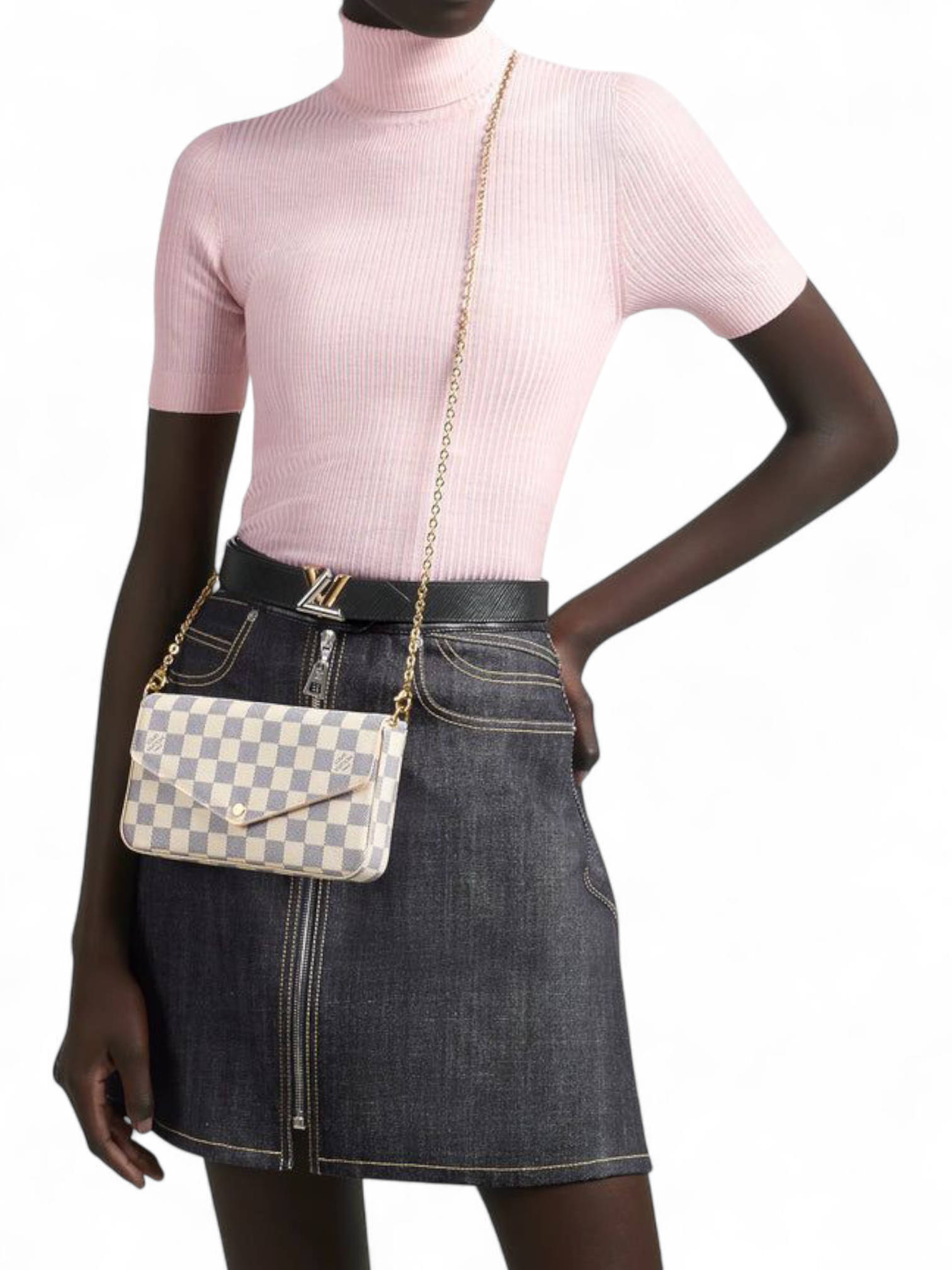 Louis Vuitton White Damier Azur Pochette Felicie + Brand Box , size 20*10