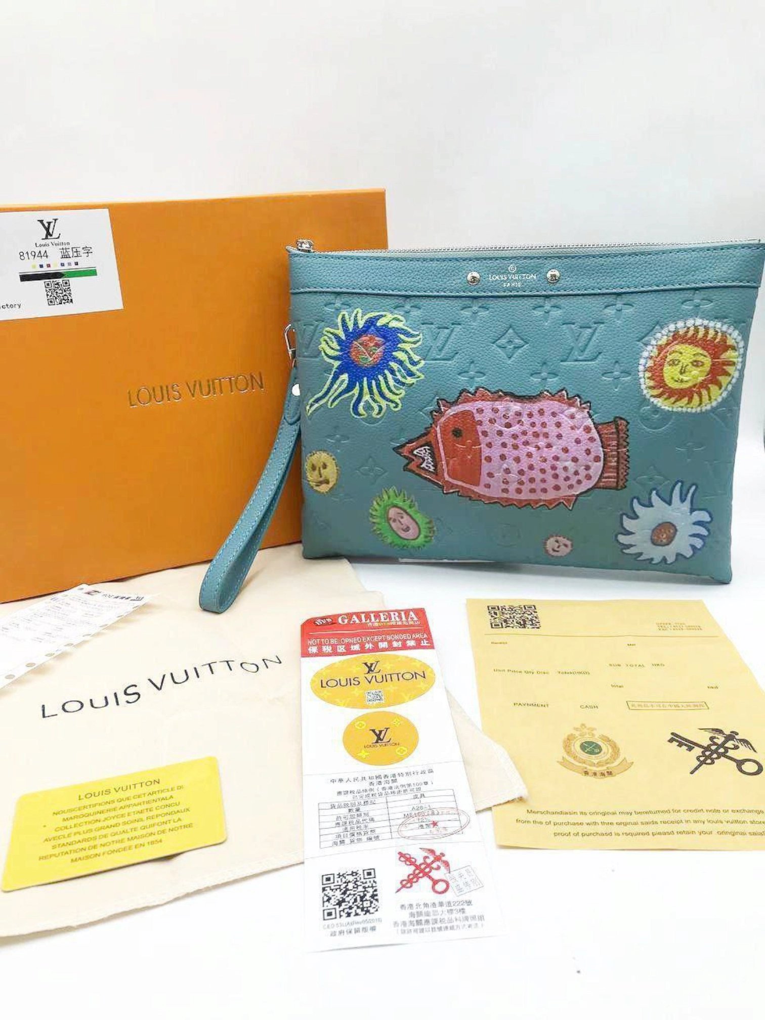 Louis Vuitton Pochette To Go Yayoi Kusama Clutch + Brand Box ، size 28×19 .. BFR