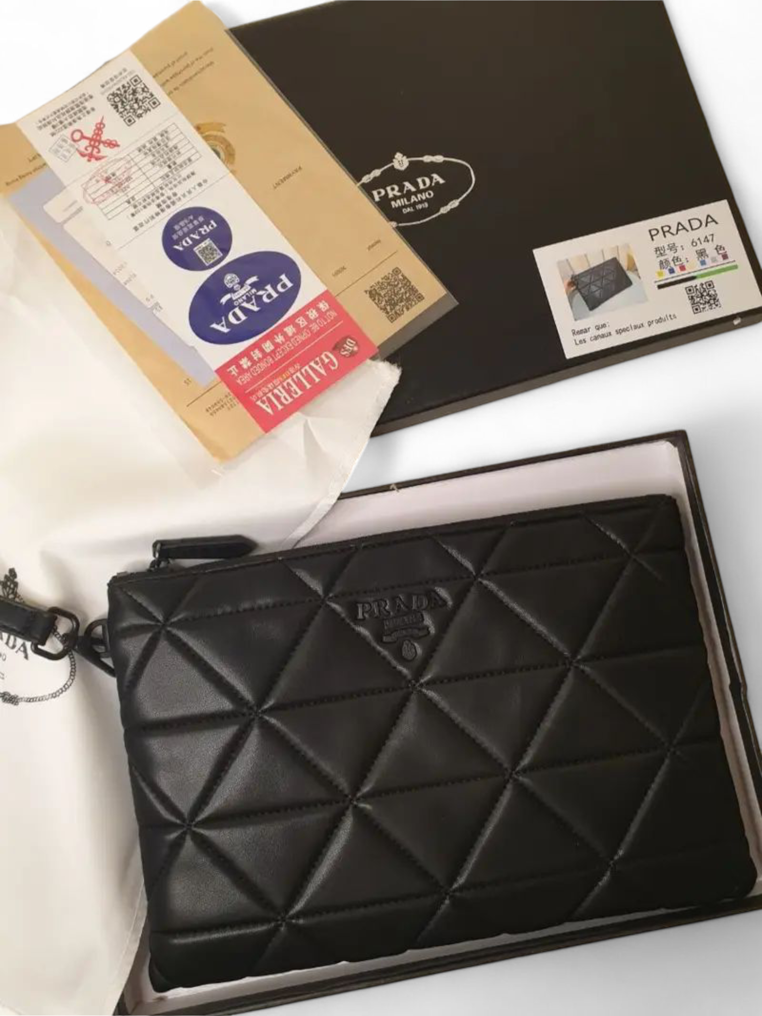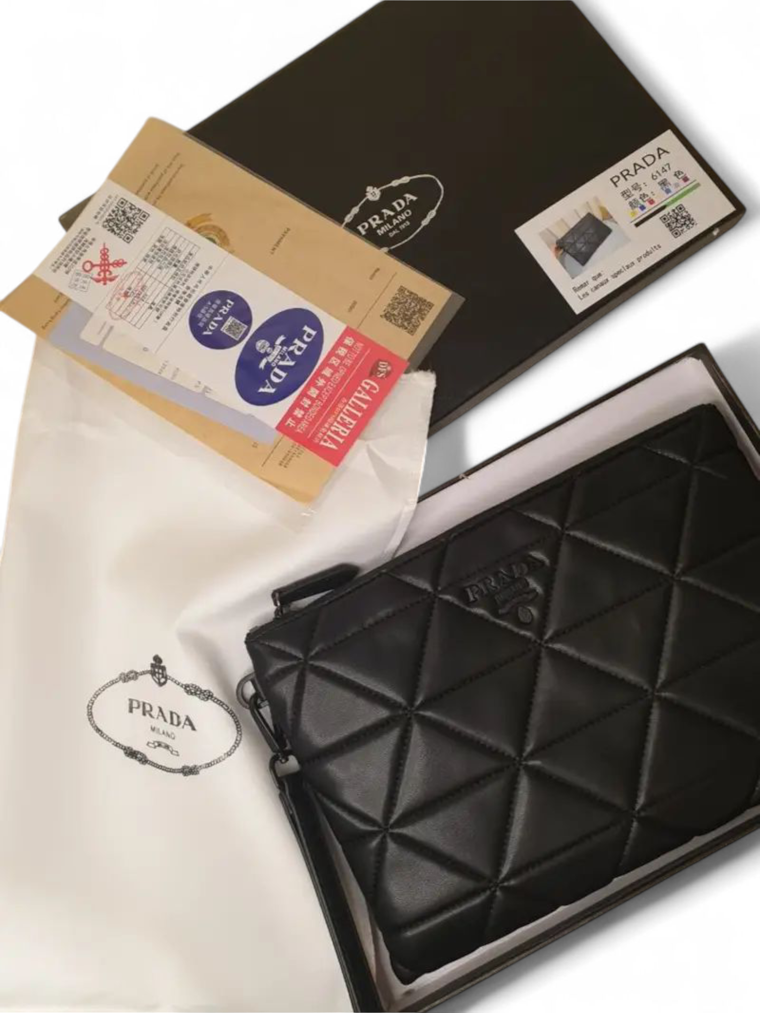 Prada Clutch System Triangle Quilted Pouch Clutch Bag, siz 27*20 + Brand Box