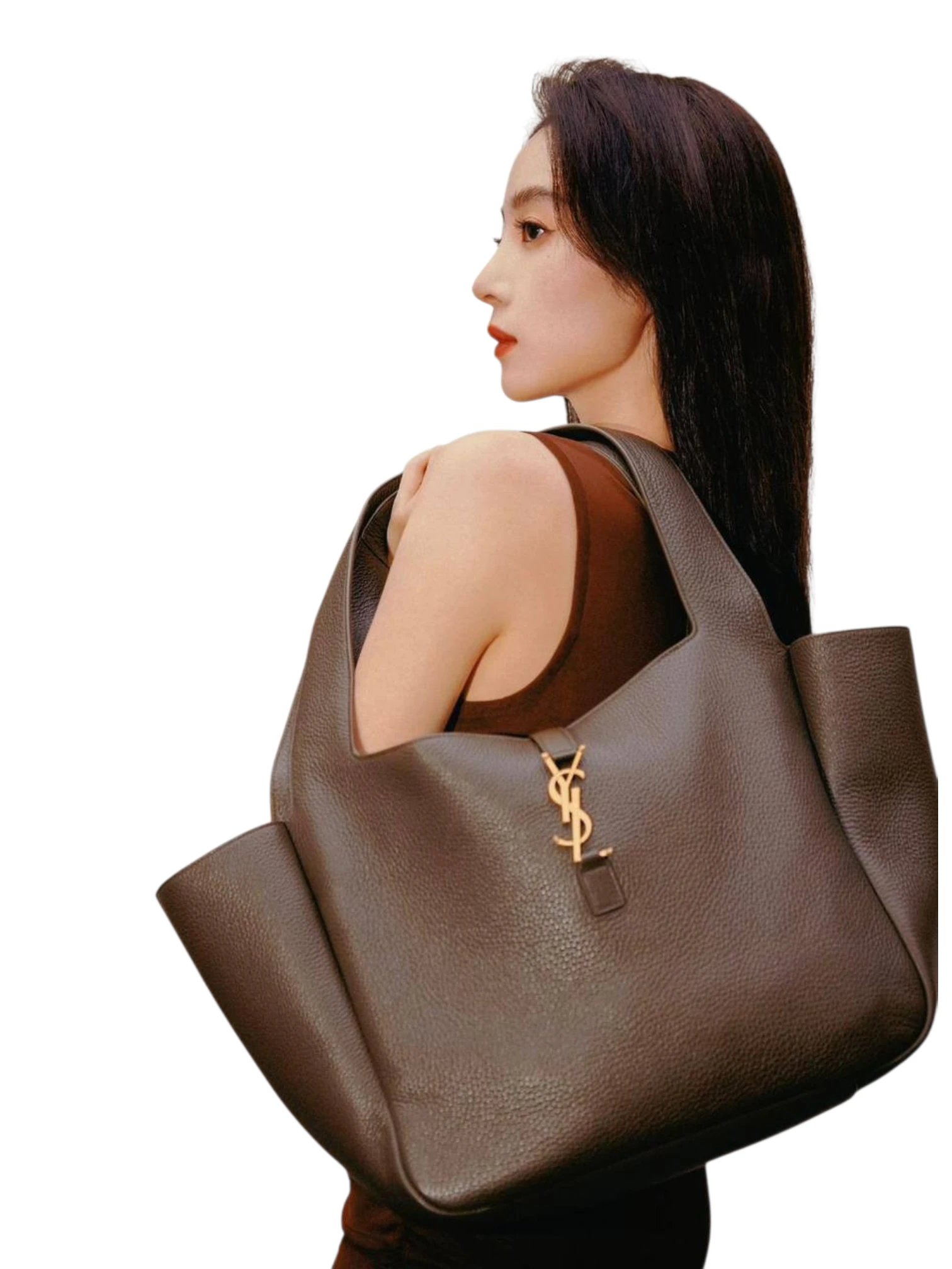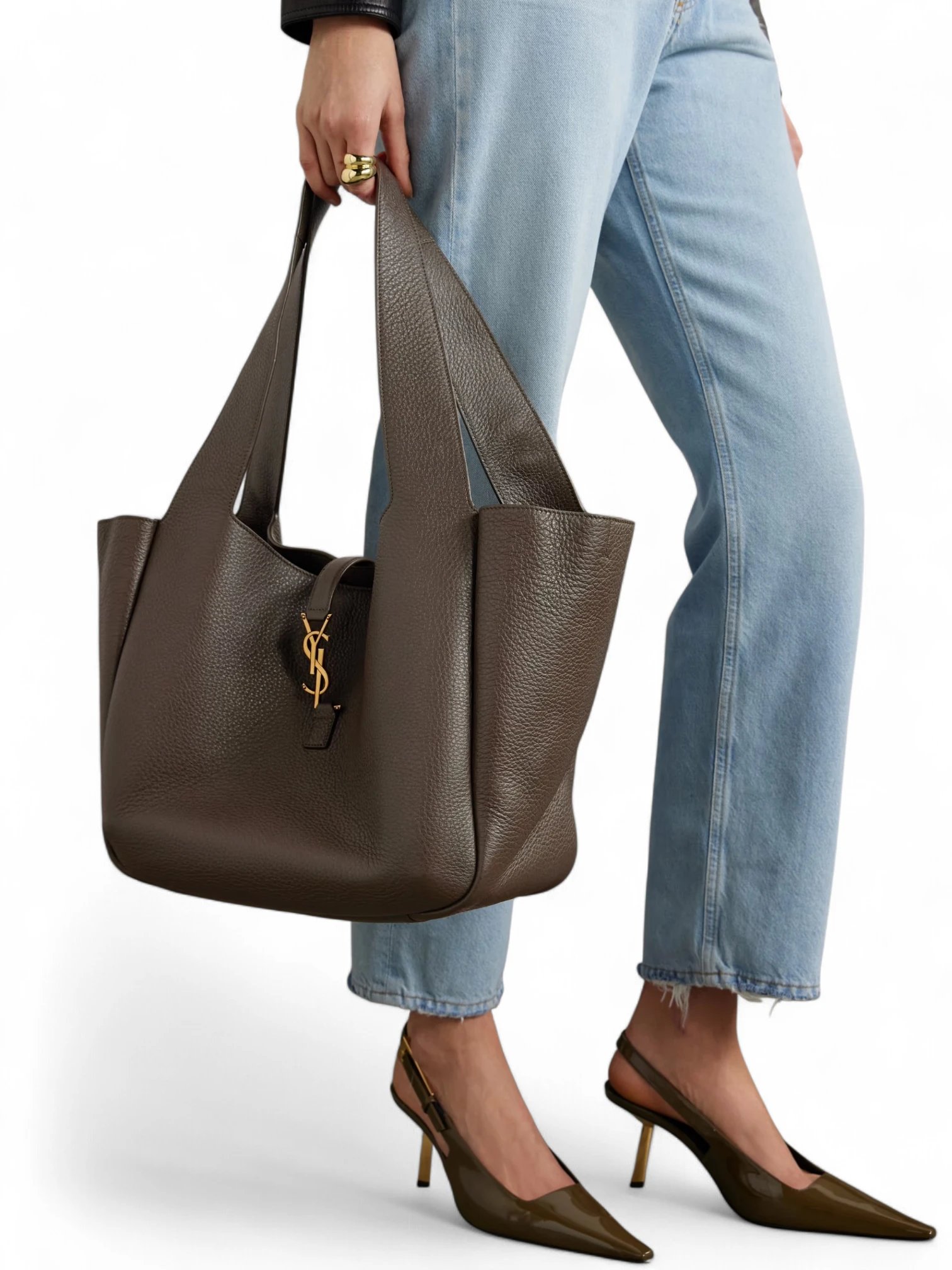 SAINT LAURENT Le 5 A 7 Bea textured leather tote brown , size 47*29