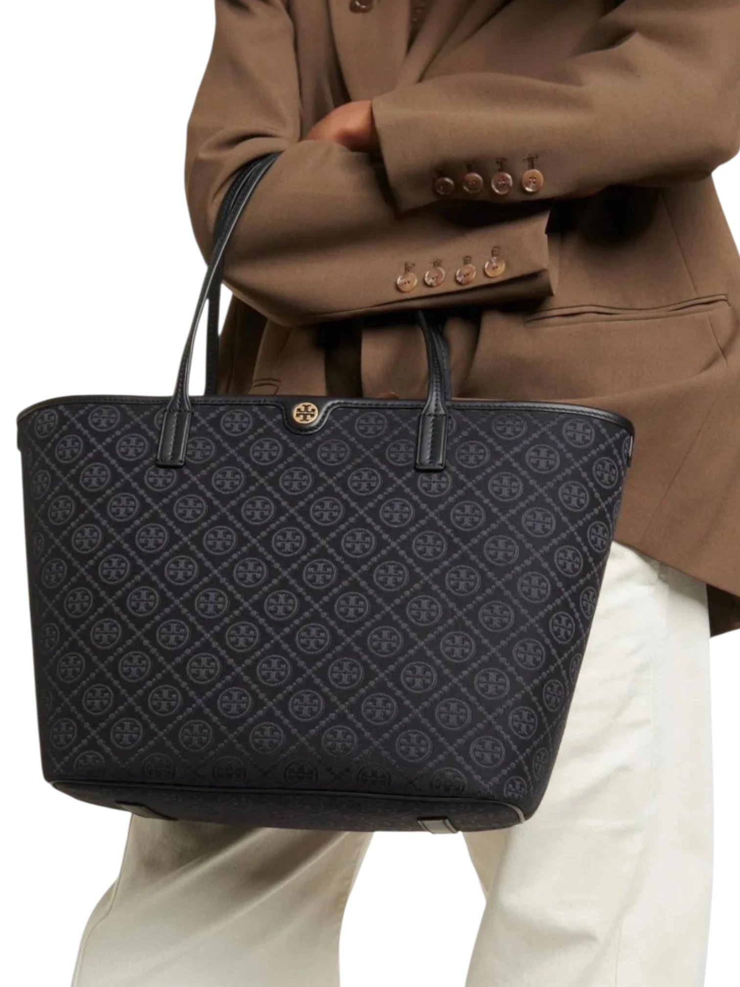 Tory Burch T Monogram zip tote bag Canvas + Dust cover , size 43*30